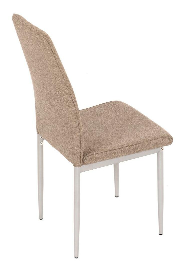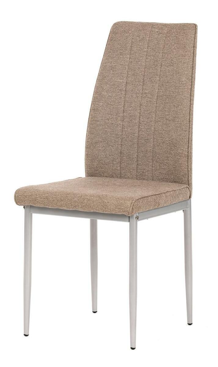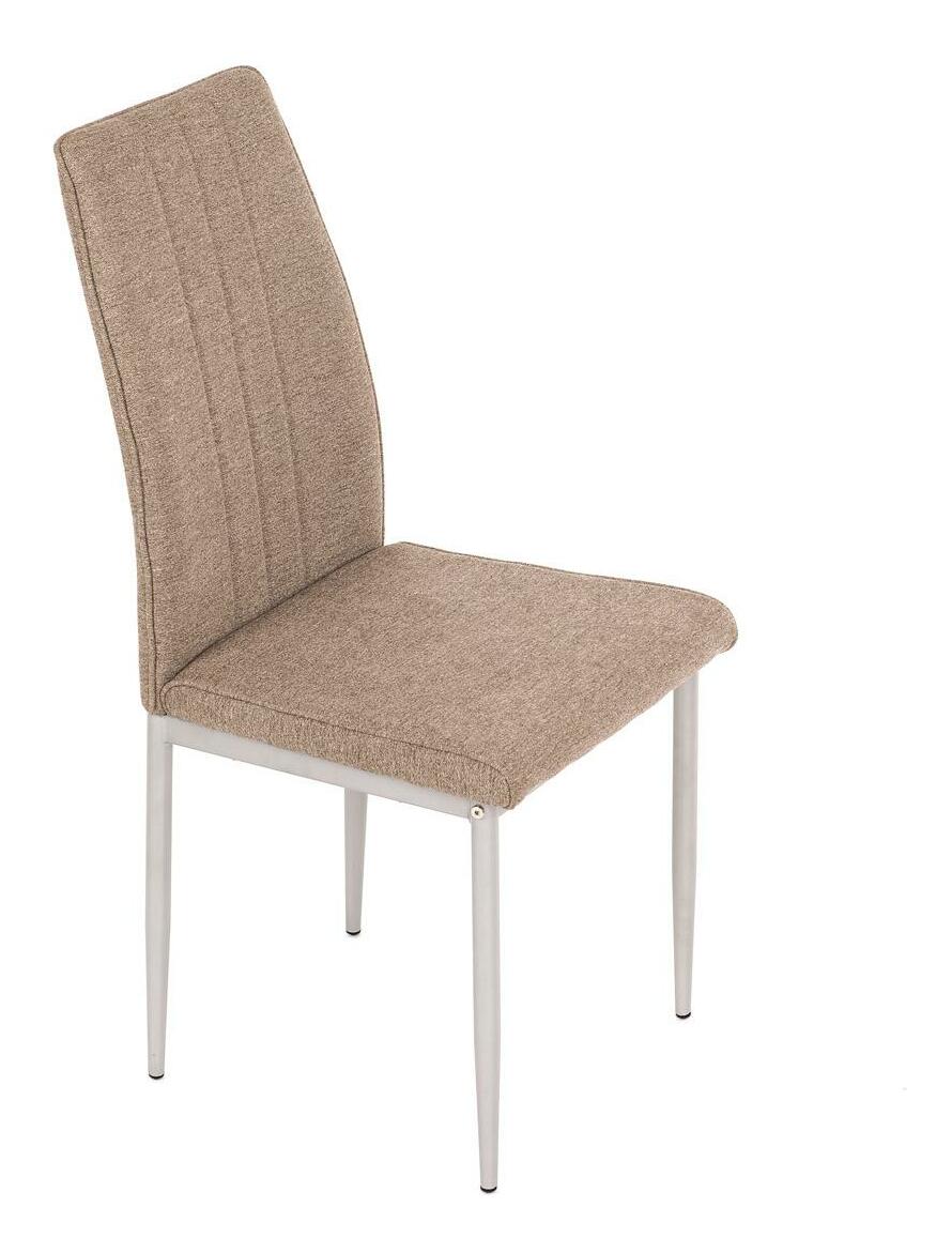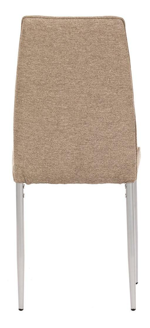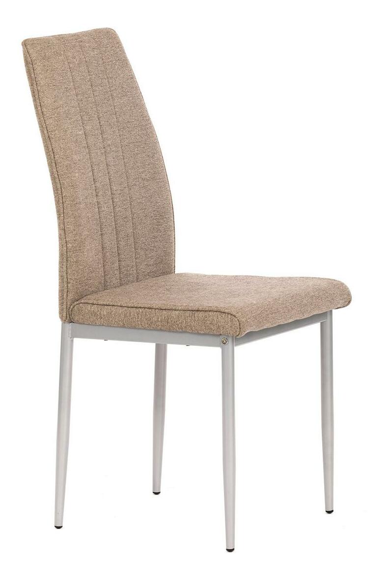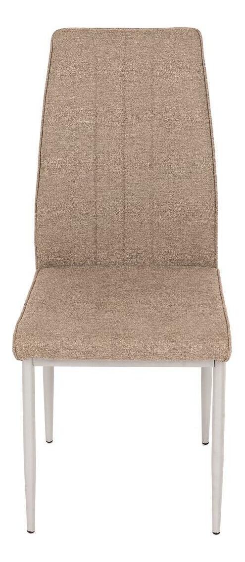 Jídelní židle v industriálním stylu zaujme svým minimalistickým designem a praktickými vlastnostmi. Potah je vyroben z odolné hladké látky v hnědé barvě, který lehce zapadne do různých interiérů. Pohodlí zajišťuje měkká PU pěna ve výplni, zatímco kovové nohy v šedé barvě dodávají stabilitu a pevnost. Elegantní prošívání dodává židli elegantní vzhled. Tento model je skvělou volbou pro moderní i klasické interiéry.
