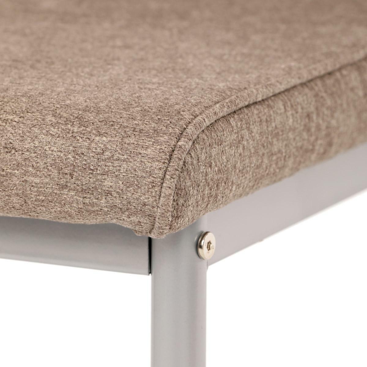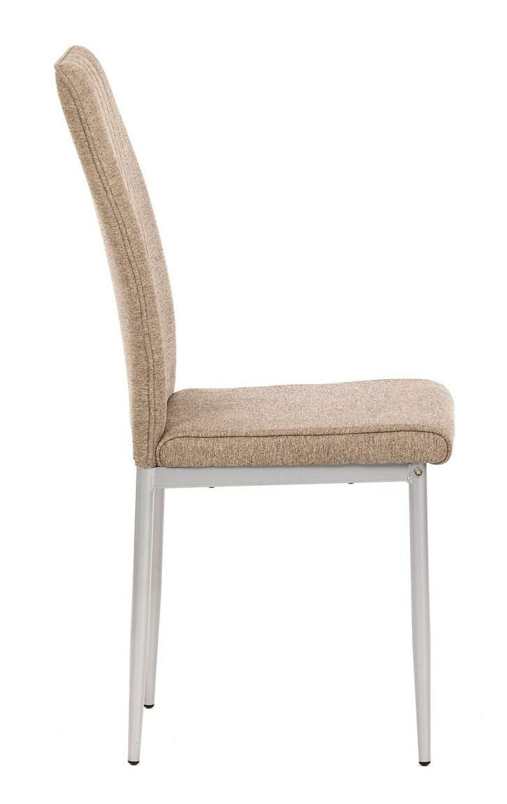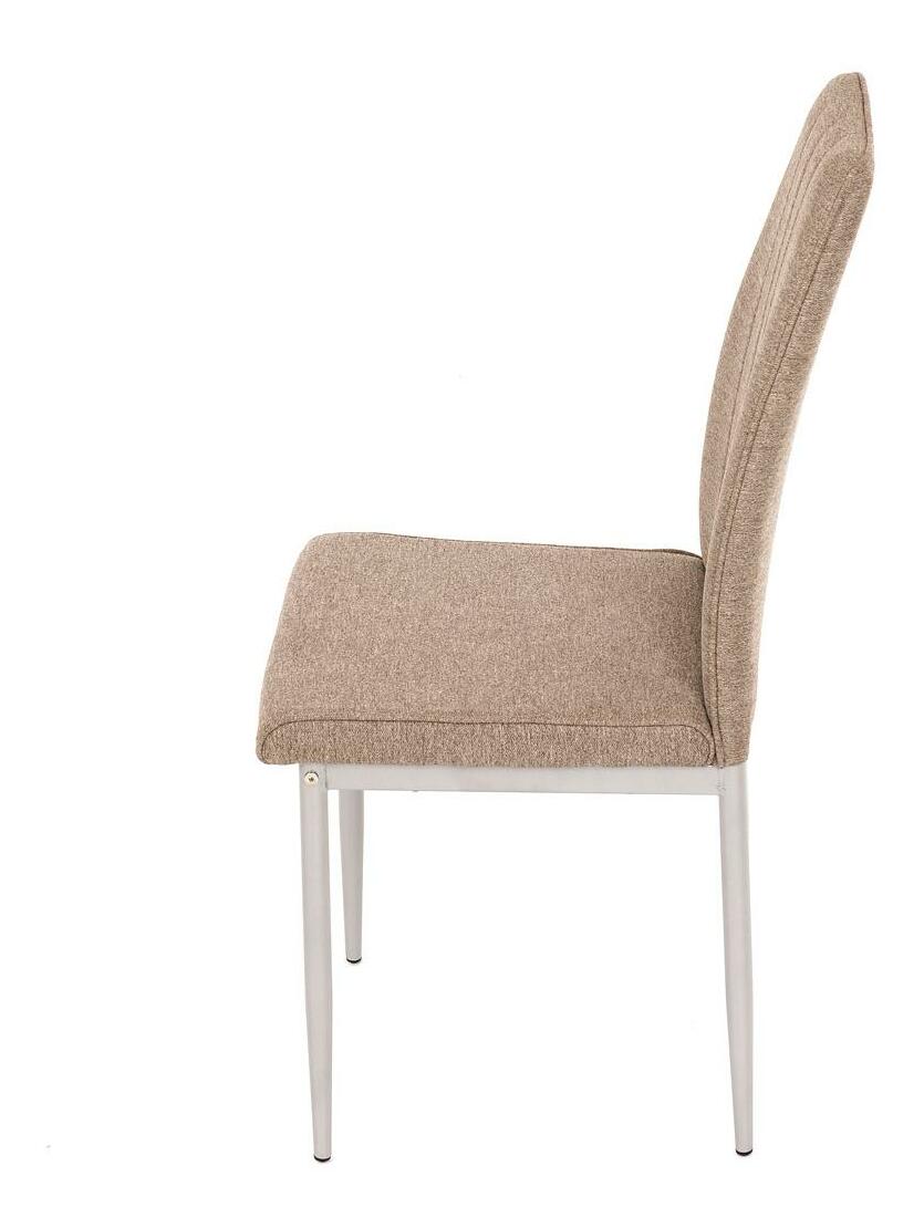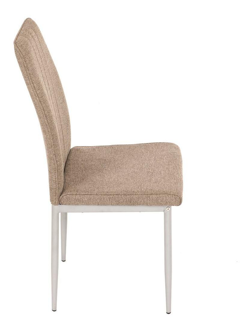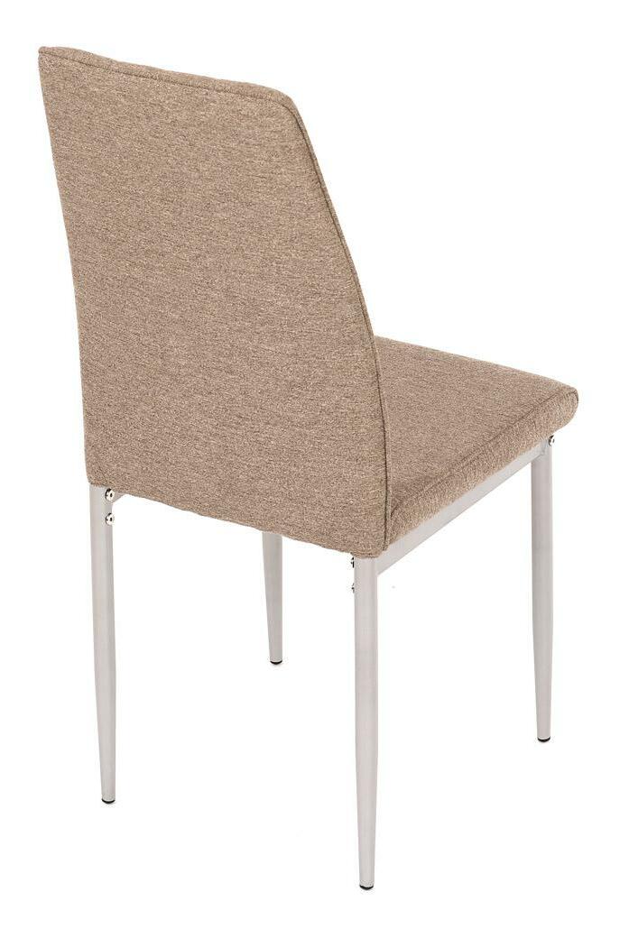 Jídelní židle v industriálním stylu zaujme svým minimalistickým designem a praktickými vlastnostmi. Potah je vyroben z odolné hladké látky v hnědé barvě, který lehce zapadne do různých interiérů. Pohodlí zajišťuje měkká PU pěna ve výplni, zatímco kovové nohy v šedé barvě dodávají stabilitu a pevnost. Elegantní prošívání dodává židli elegantní vzhled. Tento model je skvělou volbou pro moderní i klasické interiéry.