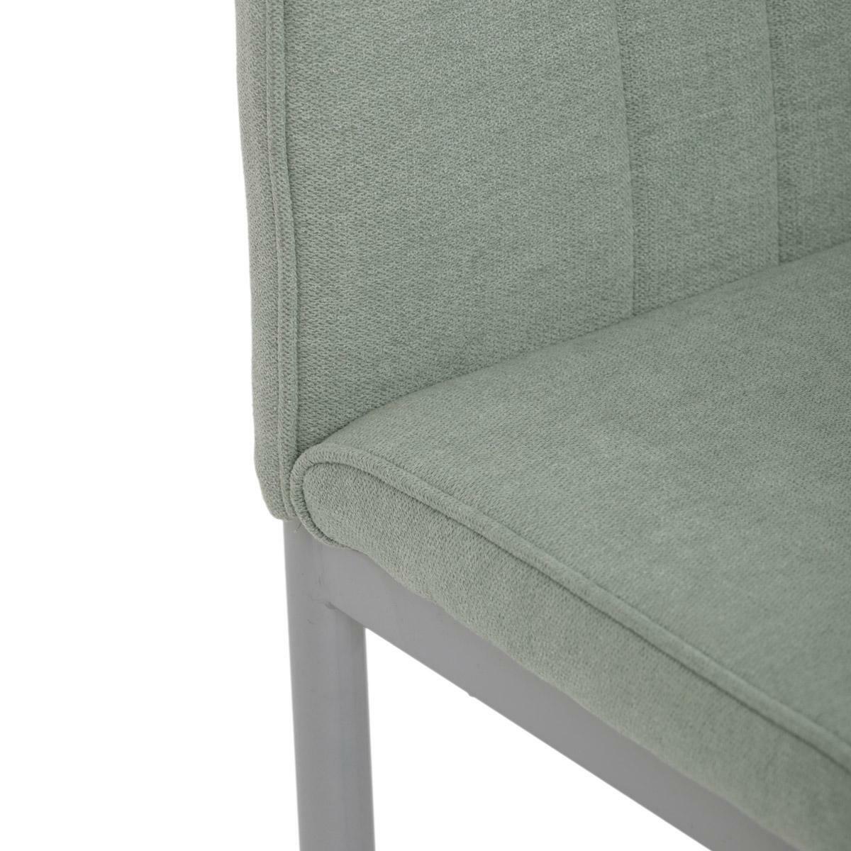 Jídelní židle v industriálním stylu zaujme svým minimalistickým designem a praktickými vlastnostmi. Potah je vyroben z odolné hladké látky v zelené barvě, který lehce zapadne do různých interiérů. Pohodlí zajišťuje měkká PU pěna ve výplni, zatímco kovové nohy v šedé barvě dodávají stabilitu a pevnost. Elegantní prošívání dodává židli elegantní vzhled. Tento model je skvělou volbou pro moderní i klasické interiéry.