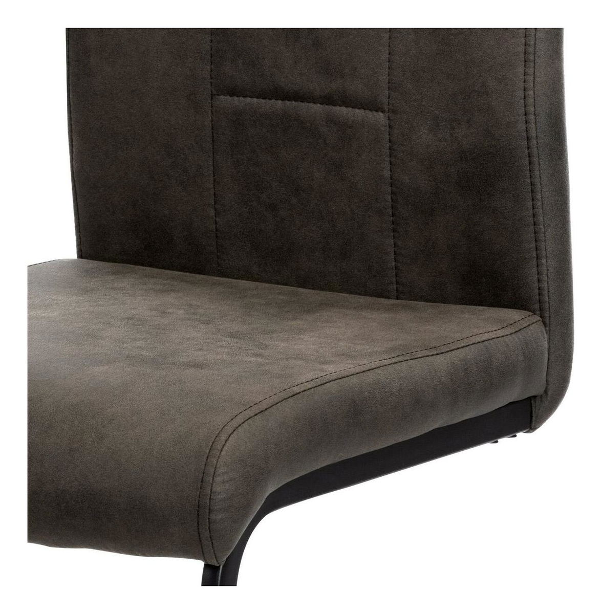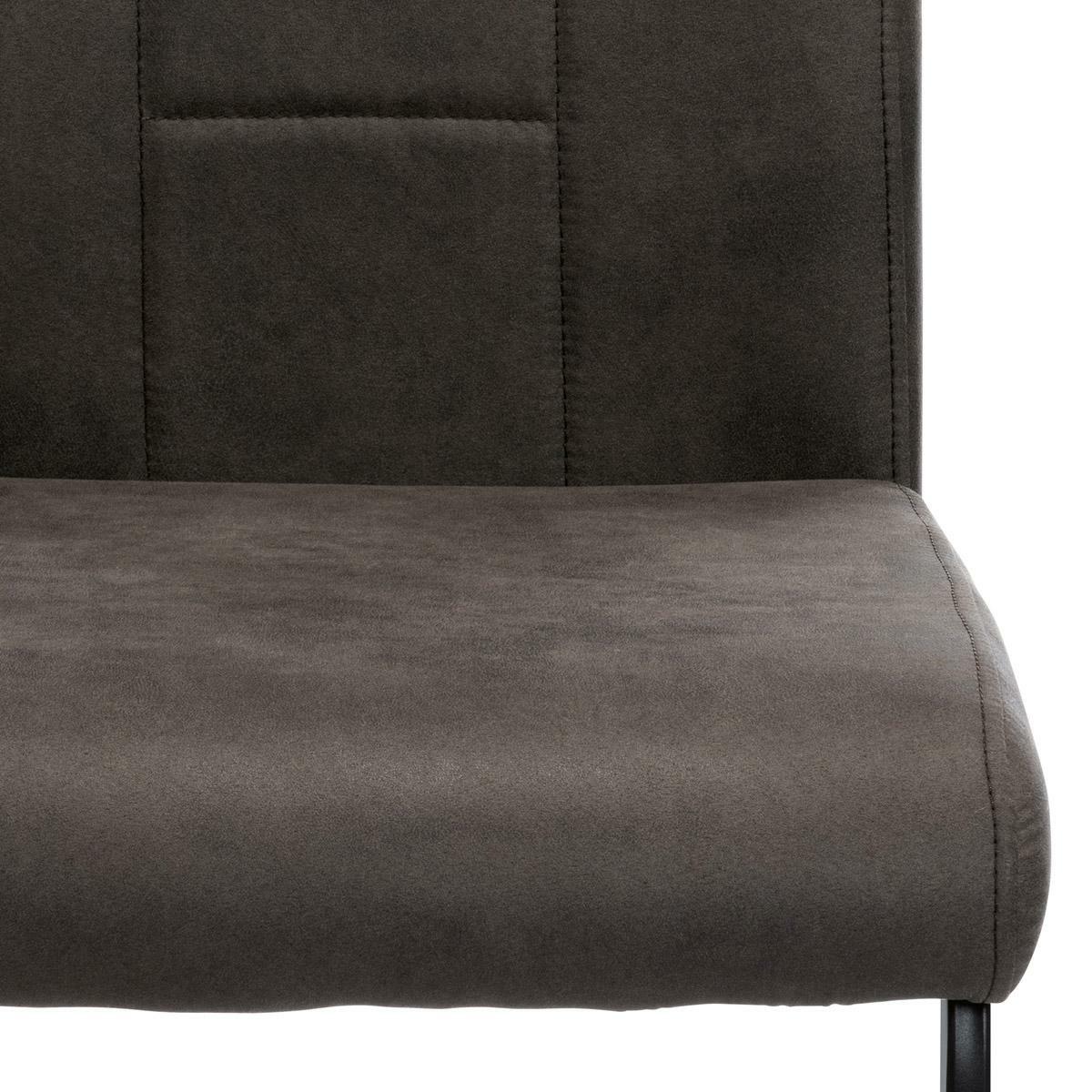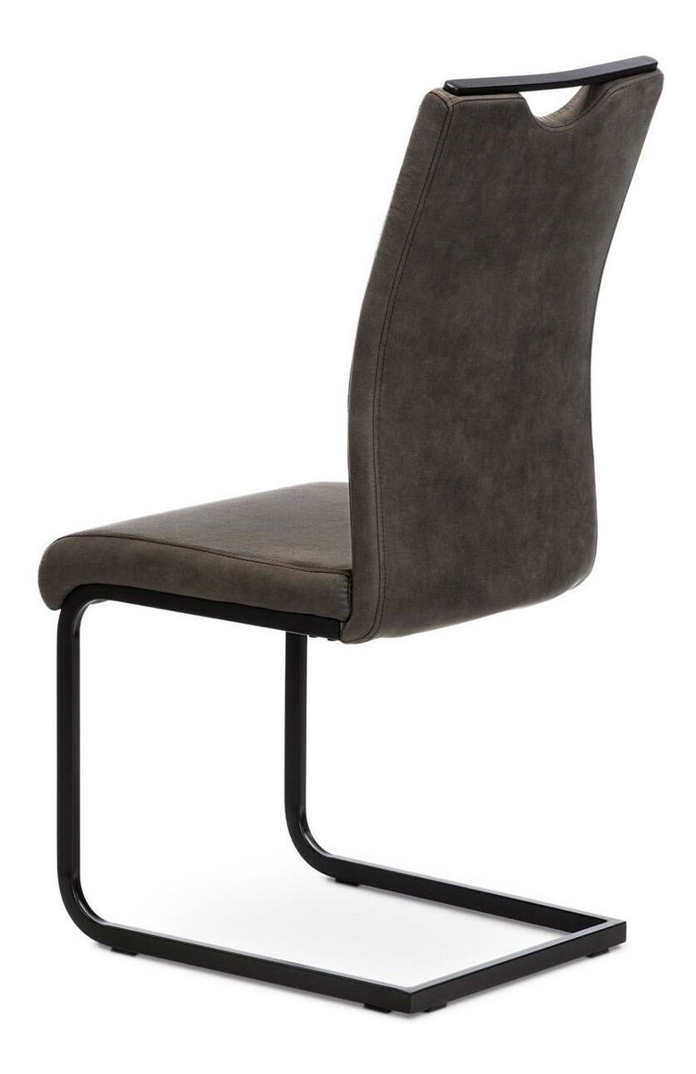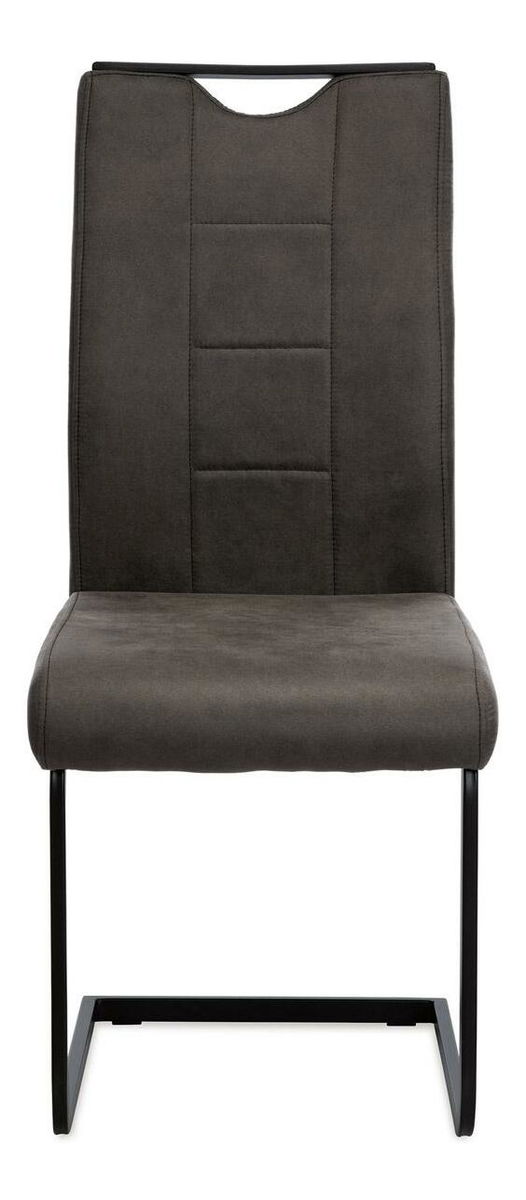 Jídelní židle v industriálním stylu. Potah je z šedé látky v trendy dekoru vintage kůže, s H a obvodovým prošitím opěradla i sedáku. Polstrování je z PU pěny. kluzáky, které sníží riziko poškození Vaší podlahy na minimum. Pro snazší manipulaci má židle i kovové madlo přes celou horní část opěradla.