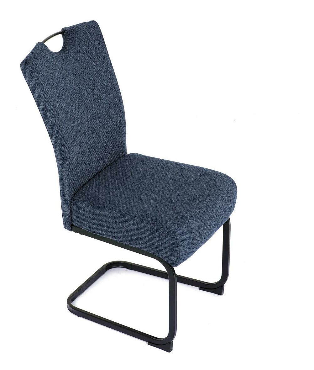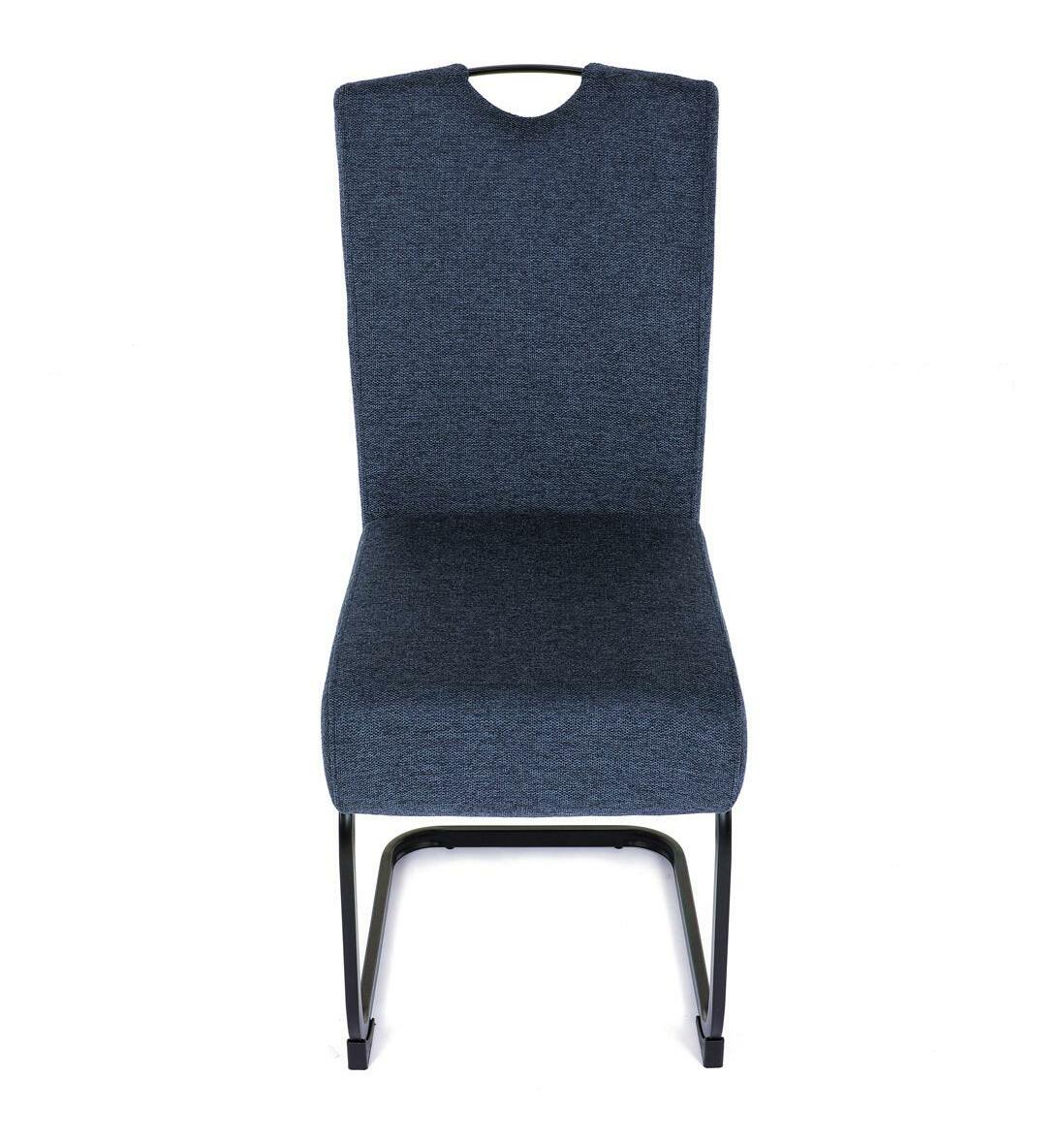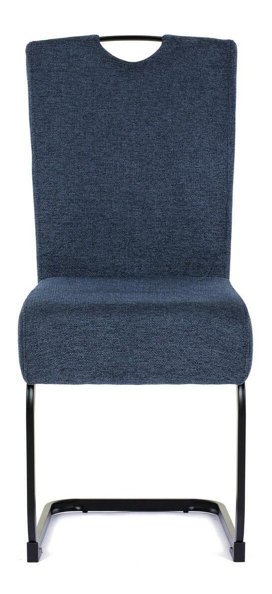 Užijte si pohodlí a moderní design s touto jídelní židlí. Tato stylová židle v modrém provedení je čalouněná hladkou látkou a vybavena taštičkovými pružinami pro maximální komfort při sezení. Pevné kovové nohy v černé barvě zajišťují stabilitu a odolnost. jakéhokoli moderního jídelního prostoru.