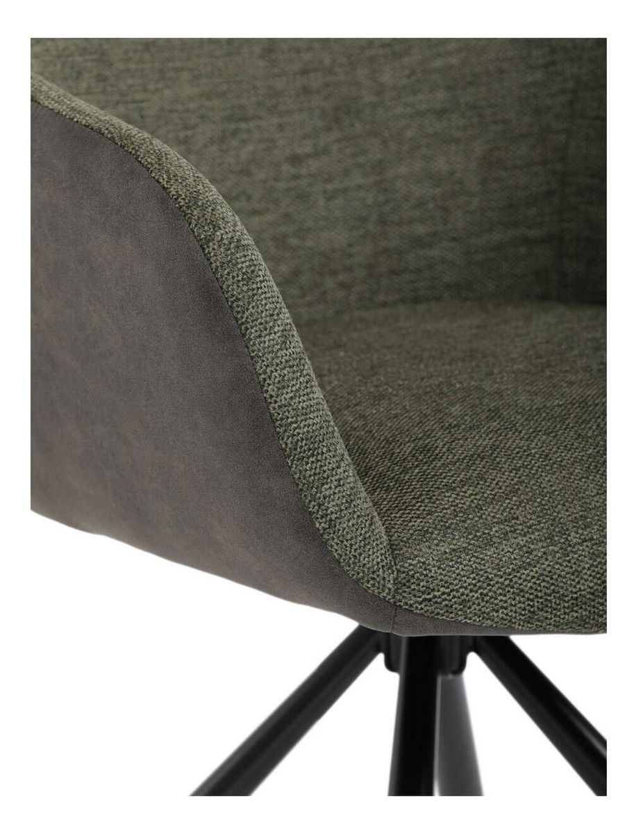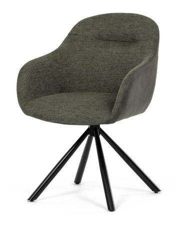 Zelená čalouněná židle vyniká kombinací barev a potahových materiálů na sedáku & opěradle a bocích. Židle dodává interiéru šmrnc a originalitu. Odolné látkové čalounění slibuje pohodlí a dlouhou životnost. Kovové nohy zajišťují stabilitu a moderní vzhled. Díky otočné funkci L90°/P90° s vratným mechanismem snadno přizpůsobíte směr sezení svým potřebám. Područky poskytují extra komfort při delším sezení, ideální pro pracovny nebo obývací pokoje.