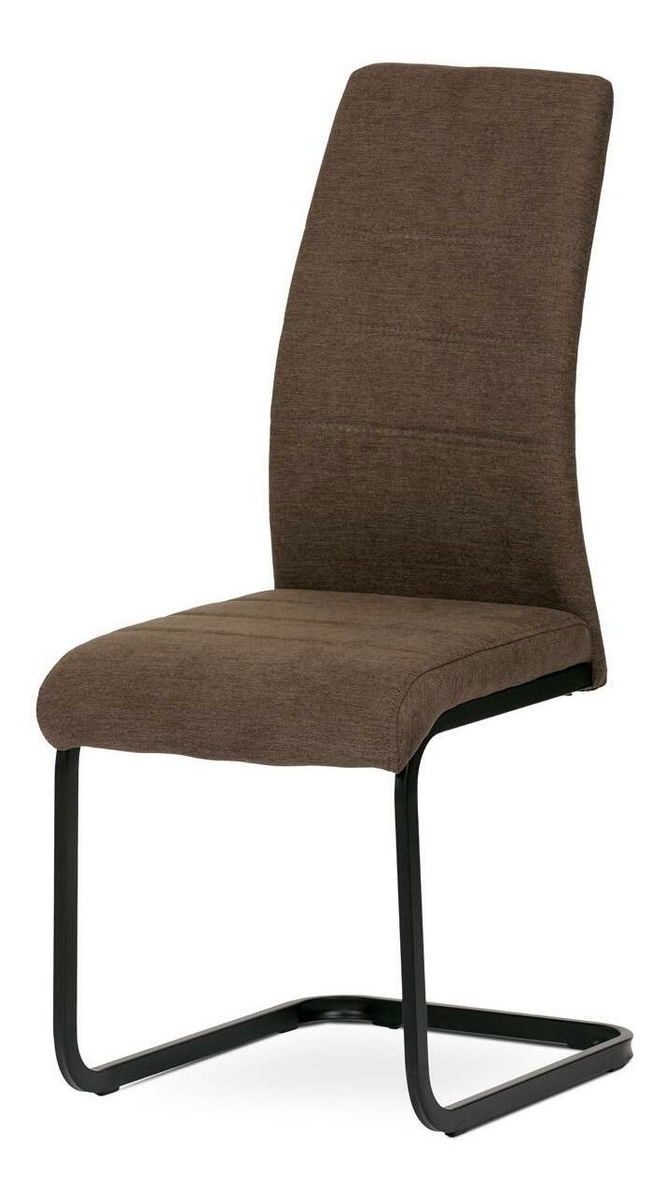Tato jídelní židle je vytvořena pro ty, kteří si přejí kombinaci pohodlí a stylového designu. S hnědou hladkou látkou a vzdušnou kovovou pohupovou podnoží bude tato židle okamžitě upoutávat pozornost všech členů Vaší domácnosti. Díky černým kovovým nohám v kontrastu s hnědou látkou je zvýrazněn její dekorativní a stylový design Vzhledem k pevné konstrukci, odolné PU pěně ve výplni a nosnosti až 120 kg je bezpečnost pro každodenní použití zaručena.