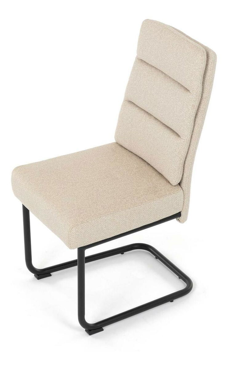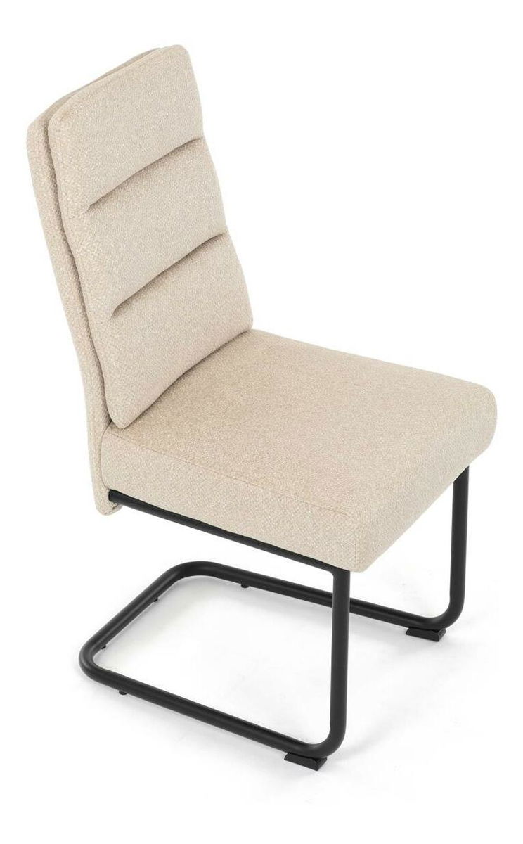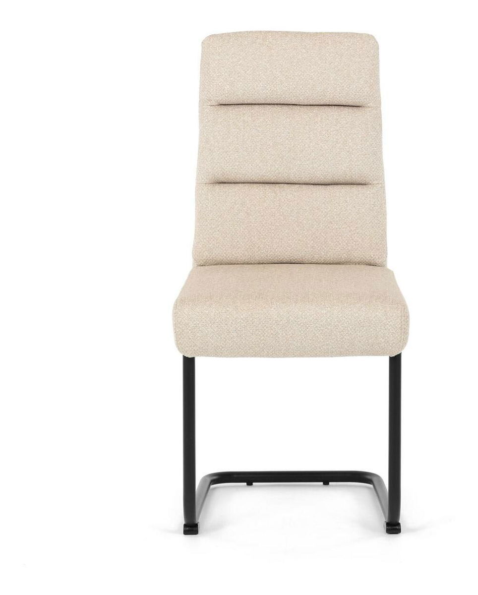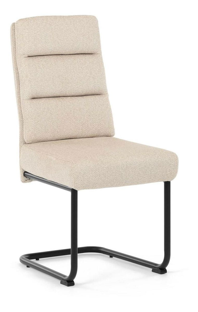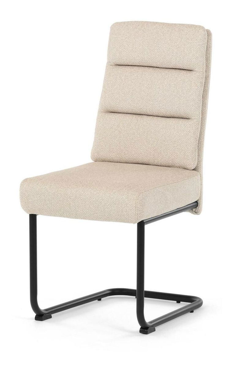 Moderní jídelní židle kombinuje elegantní design s maximálním komfortem. Sedák a opěradlo jsou čalouněny jemně hrubou látkou, která je příjemná na dotek a zároveň stylová. Pohupová kovová konstrukce v černé barvě dodává židli nejen stabilitu, ale také moderní vzhled, který skvěle zapadne do každé jídelny. Díky taštičkovým pružinám v sedáku nabízí tato židle vysoký komfort při sezení. Ideální volba pro moderní interiéry i každodenní stolování.