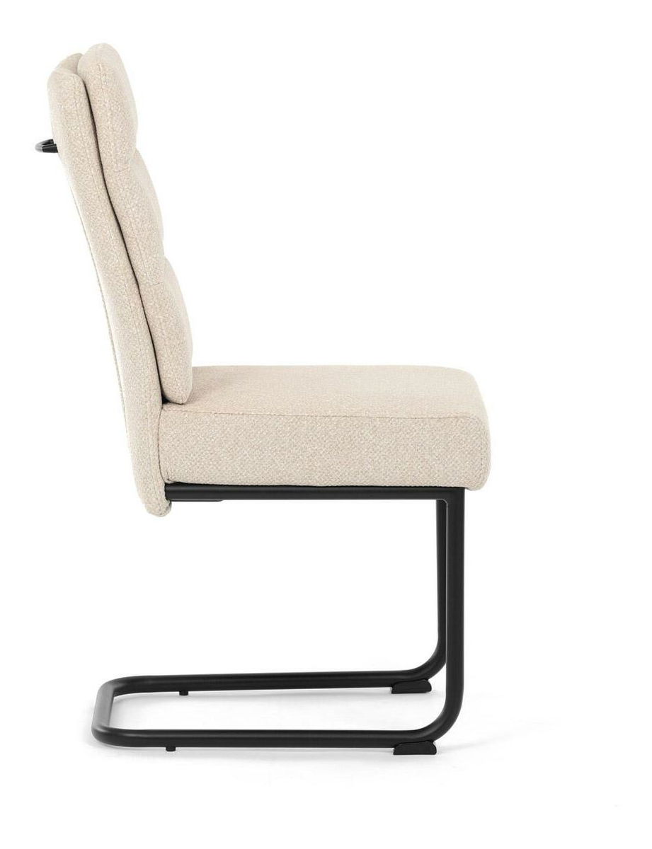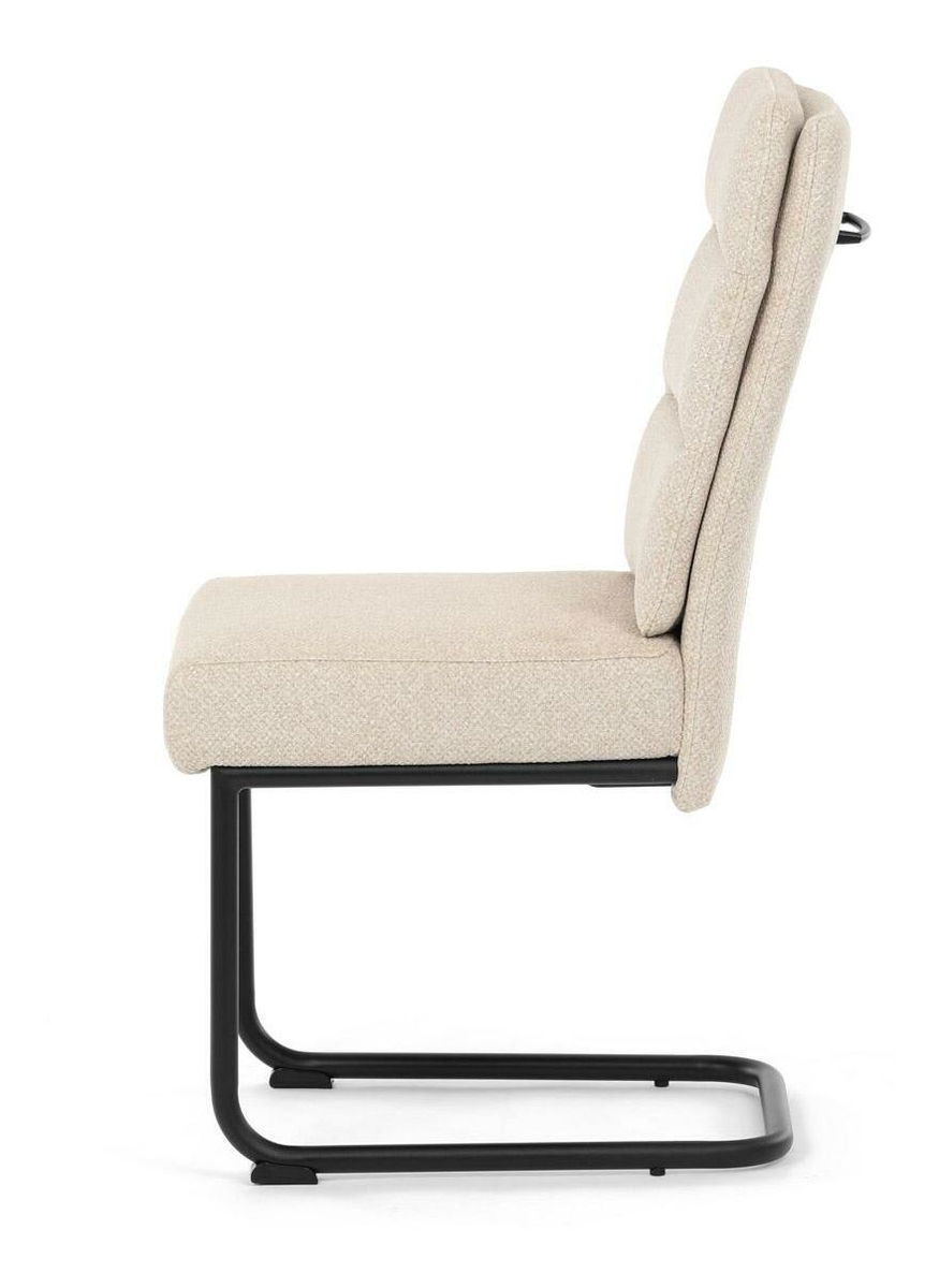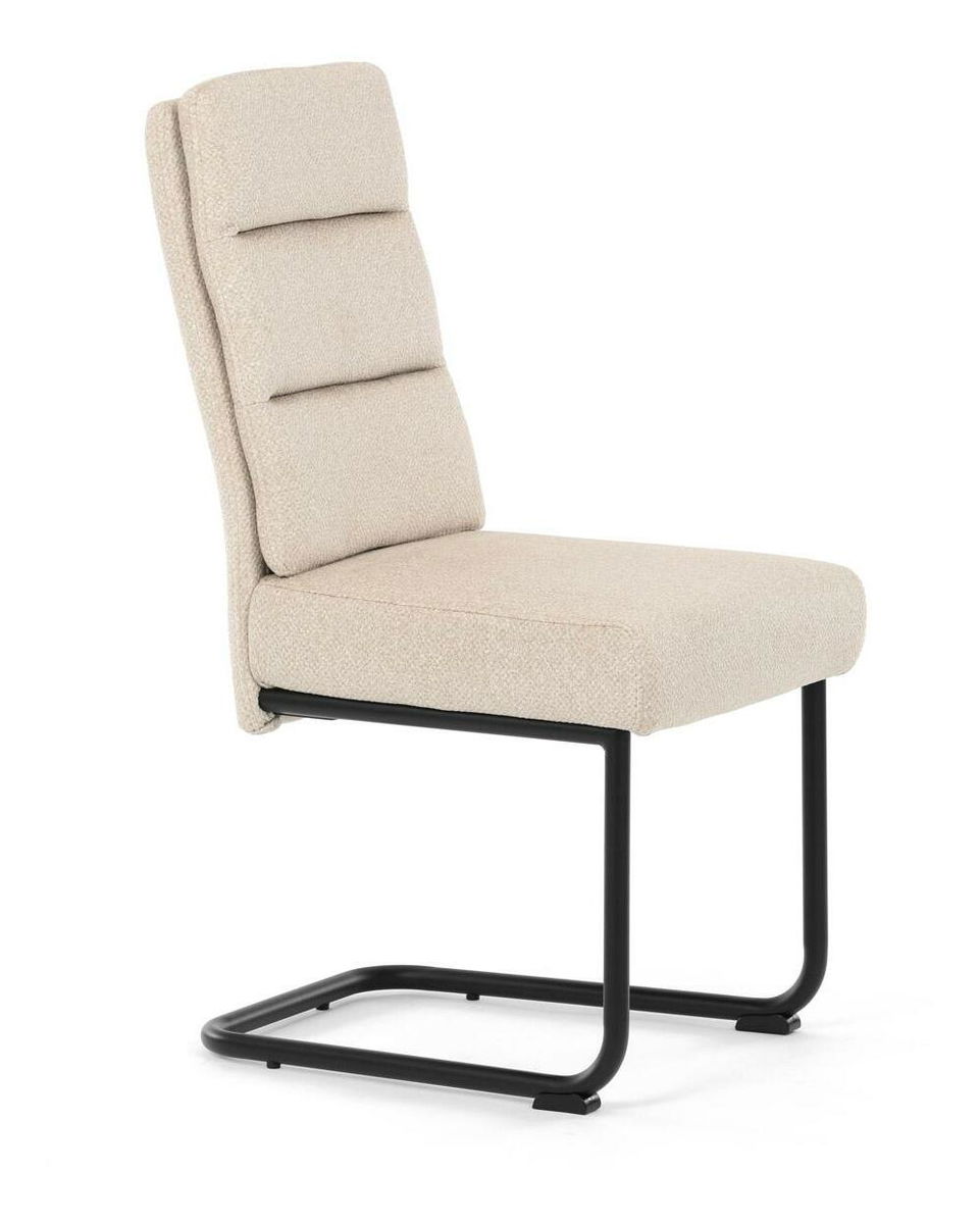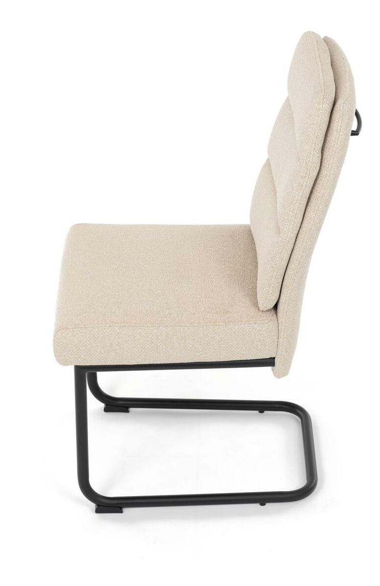 Moderní jídelní židle kombinuje elegantní design s maximálním komfortem. Sedák a opěradlo jsou čalouněny jemně hrubou látkou, která je příjemná na dotek a zároveň stylová. Pohupová kovová konstrukce v černé barvě dodává židli nejen stabilitu, ale také moderní vzhled, který skvěle zapadne do každé jídelny. Díky taštičkovým pružinám v sedáku nabízí tato židle vysoký komfort při sezení. Ideální volba pro moderní interiéry i každodenní stolování.