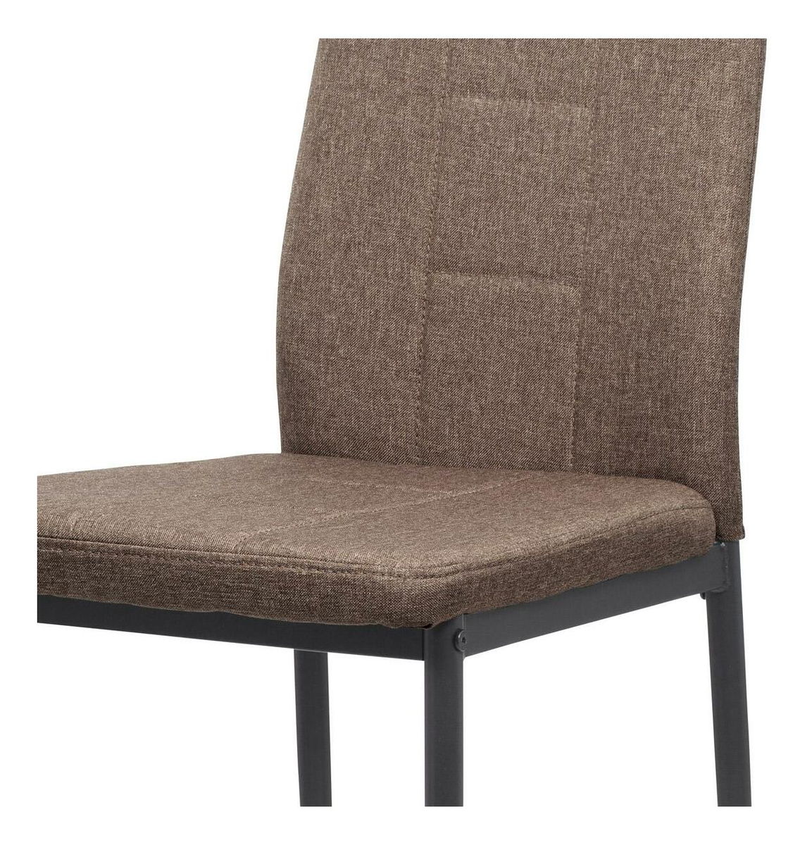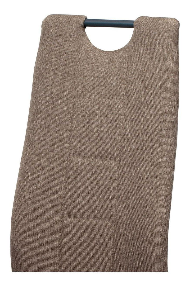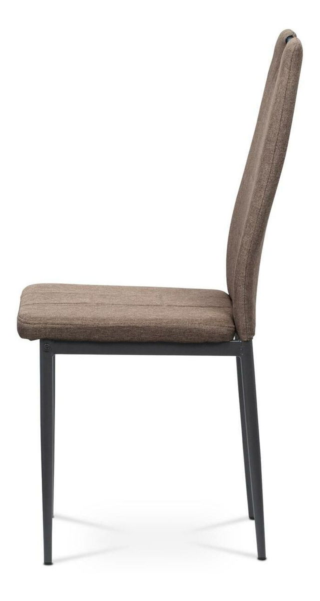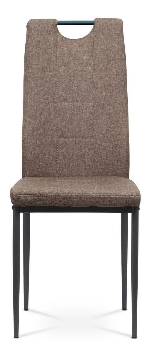 ZobrazitModerní jídelní židle s jednoduchým designem je čalouněna příjemnou hnědou látkou s prošitím sedáku i opěradla. Kovová podnož je lakována matnou antracitovou barvou a její součástí jsou také černé plastové kluzáky, které snižují riziko poškození podlahy. Pro snazší manipulaci je židle vybavena kovovým madlem, které je lakováno matnou antracitovou barvou. Nosnost židle je maximálně 110 kg.