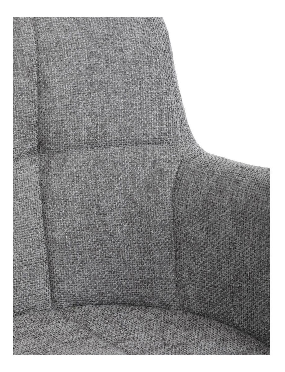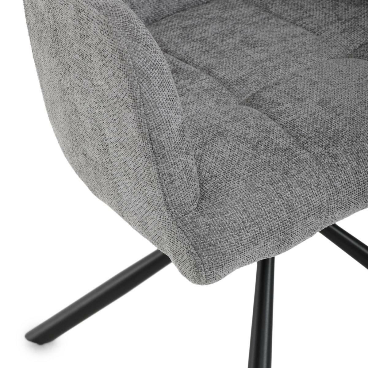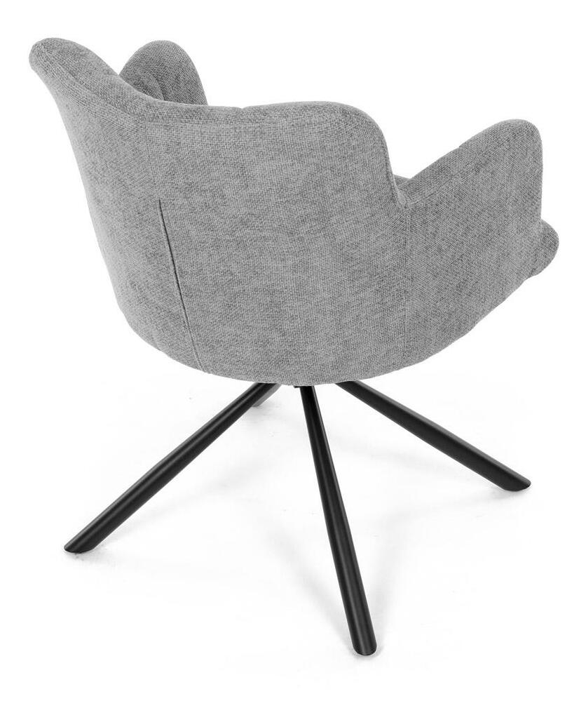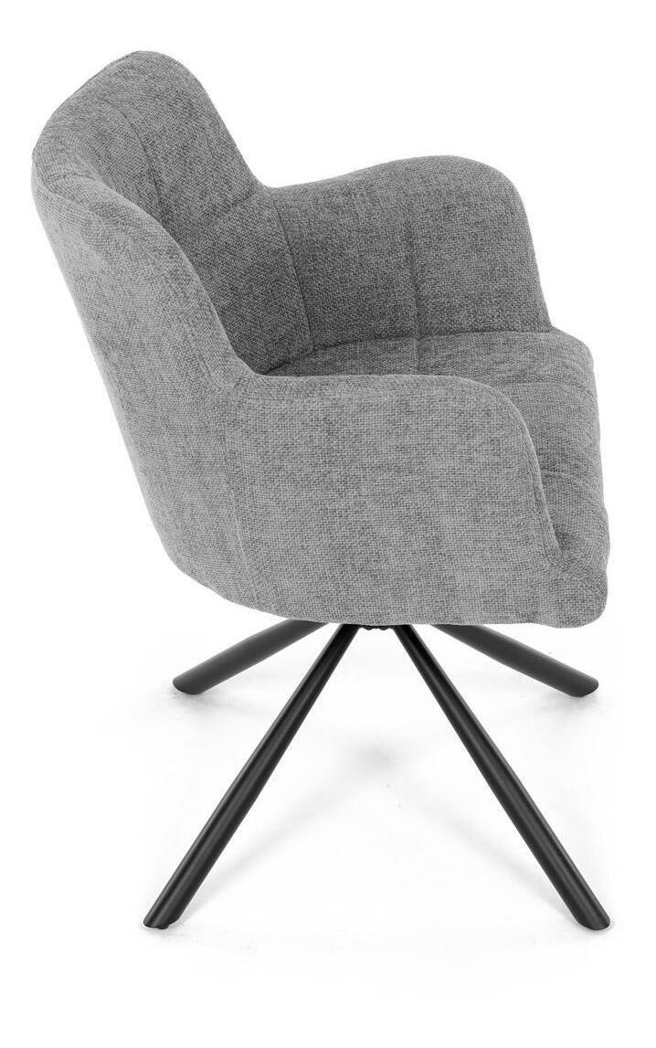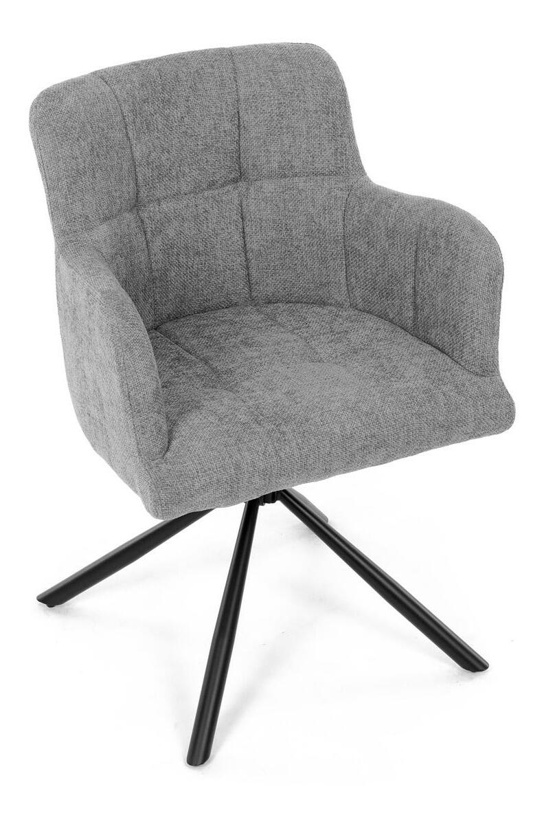 Moderní šedá jídelní židle nabízí elegantní a funkční řešení pro váš interiér. Pohodlné čalounění z hladké látky v kombinaci s výplní z PU pěny zajišťuje komfort i při delším sezení. Otočný mechanismus 180° s funkcí resetu vrátí židli do původní pozice, což je praktické zejména pro vizuální vzhled jídelny. Kovové nohy s centrálním podnožím zajišťují stabilitu a stylový industriální vzhled. Područky a vysoké opěradlo poskytují oporu pro maximální pohodlí. Tato židle je skvělou volbou pro moderní interiéry