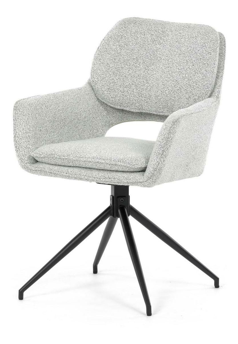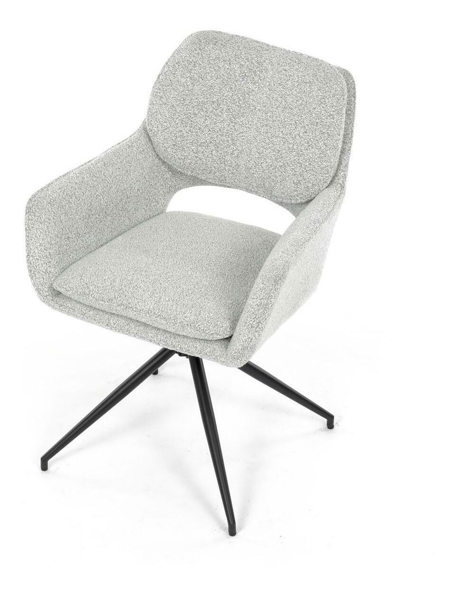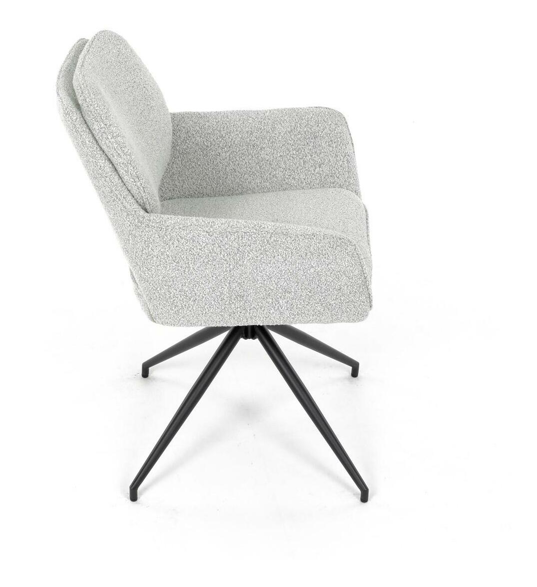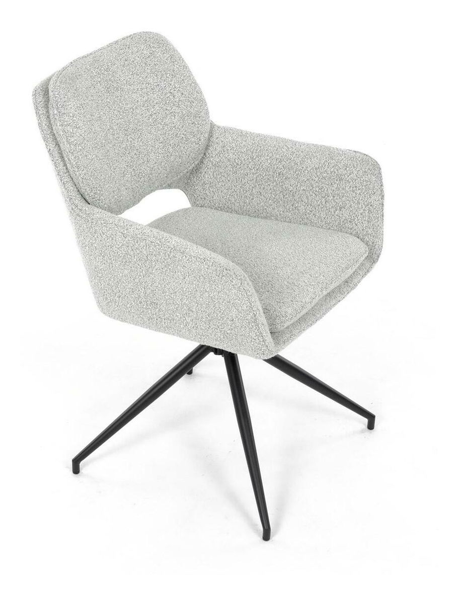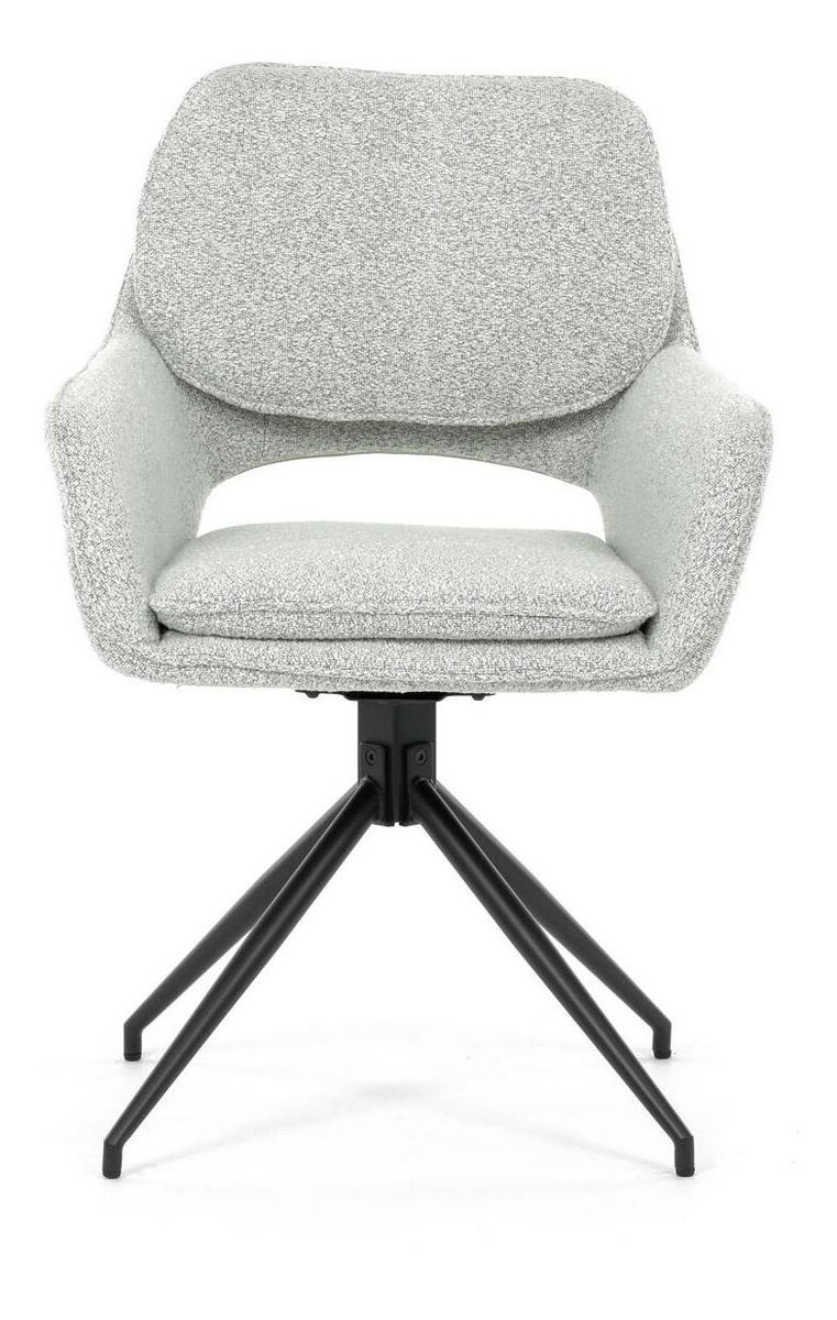Moderní šedá jídelní židle nabízí elegantní a funkční řešení pro váš interiér. Pohodlné čalounění z hladké látky v kombinaci s výplní z PU pěny zajišťuje komfort i při delším sezení. Otočný mechanismus 180° s funkcí resetu vrátí židli do původní pozice, což je praktické zejména pro vizuální vzhled jídelny. Kovové nohy s centrálním podnožím zajišťují stabilitu a stylový industriální vzhled. Područky a vysoké opěradlo poskytují oporu pro maximální pohodlí. Tato židle je skvělou volbou pro moderní interiéry.