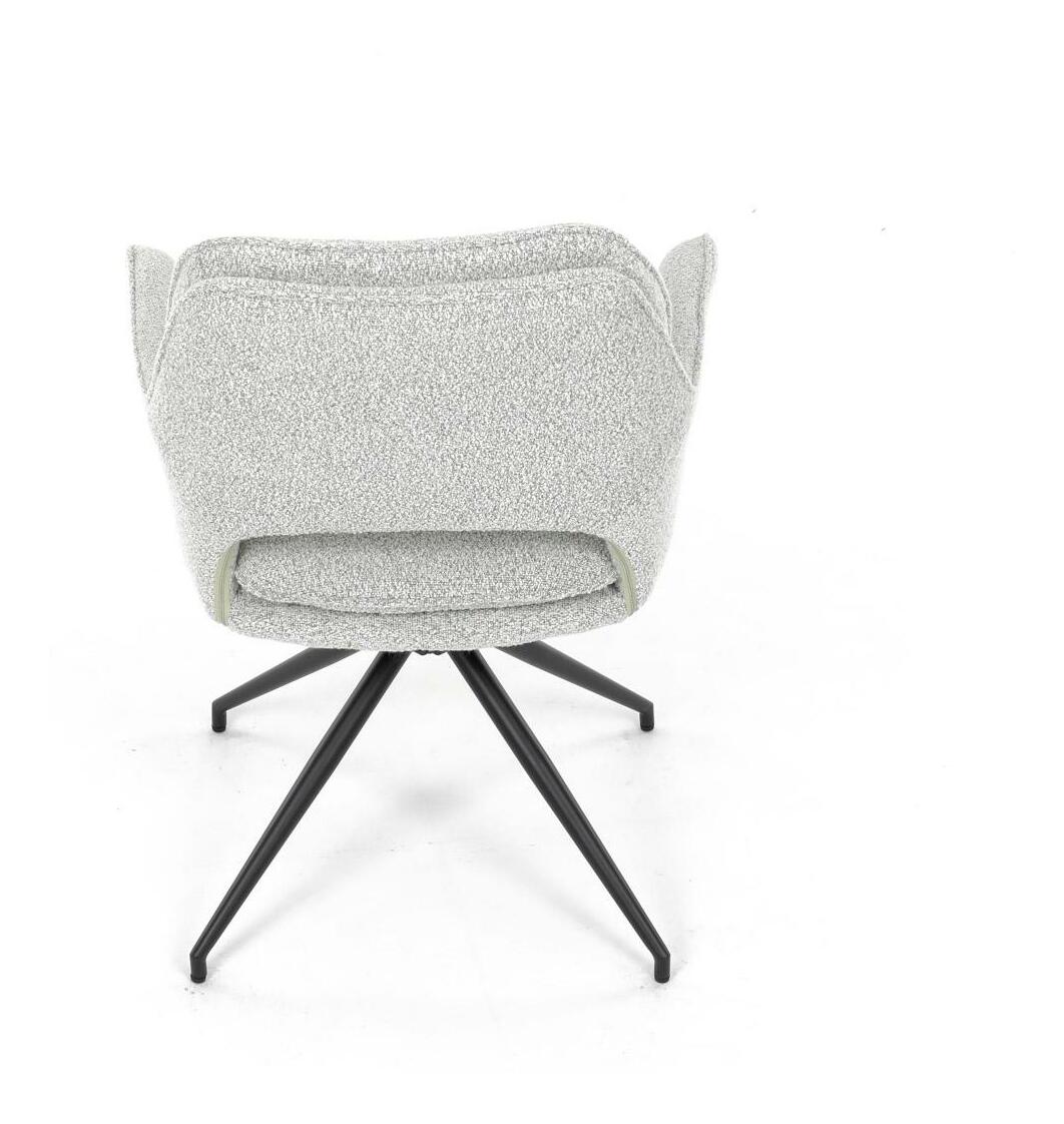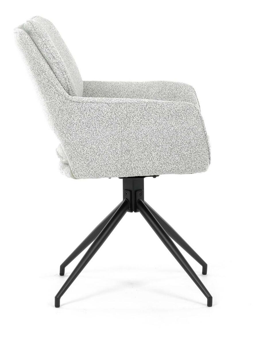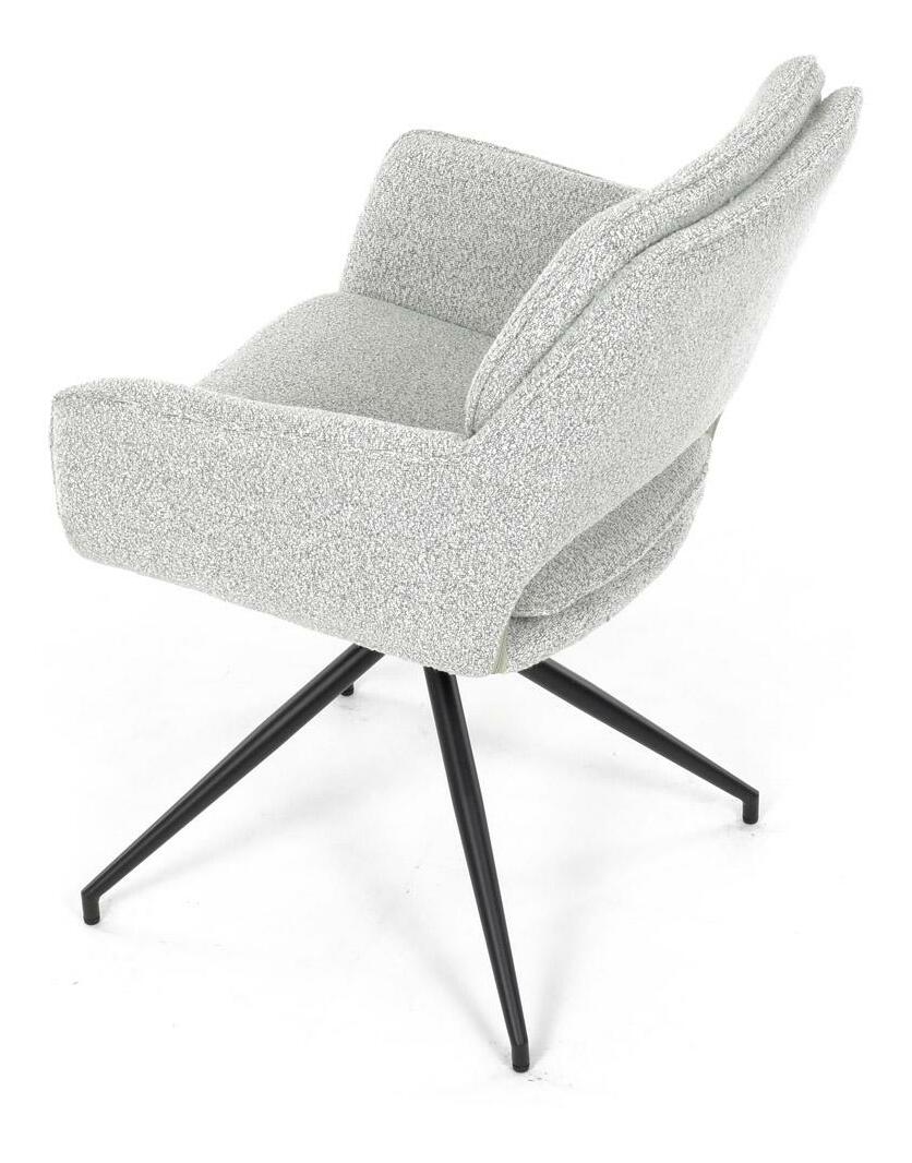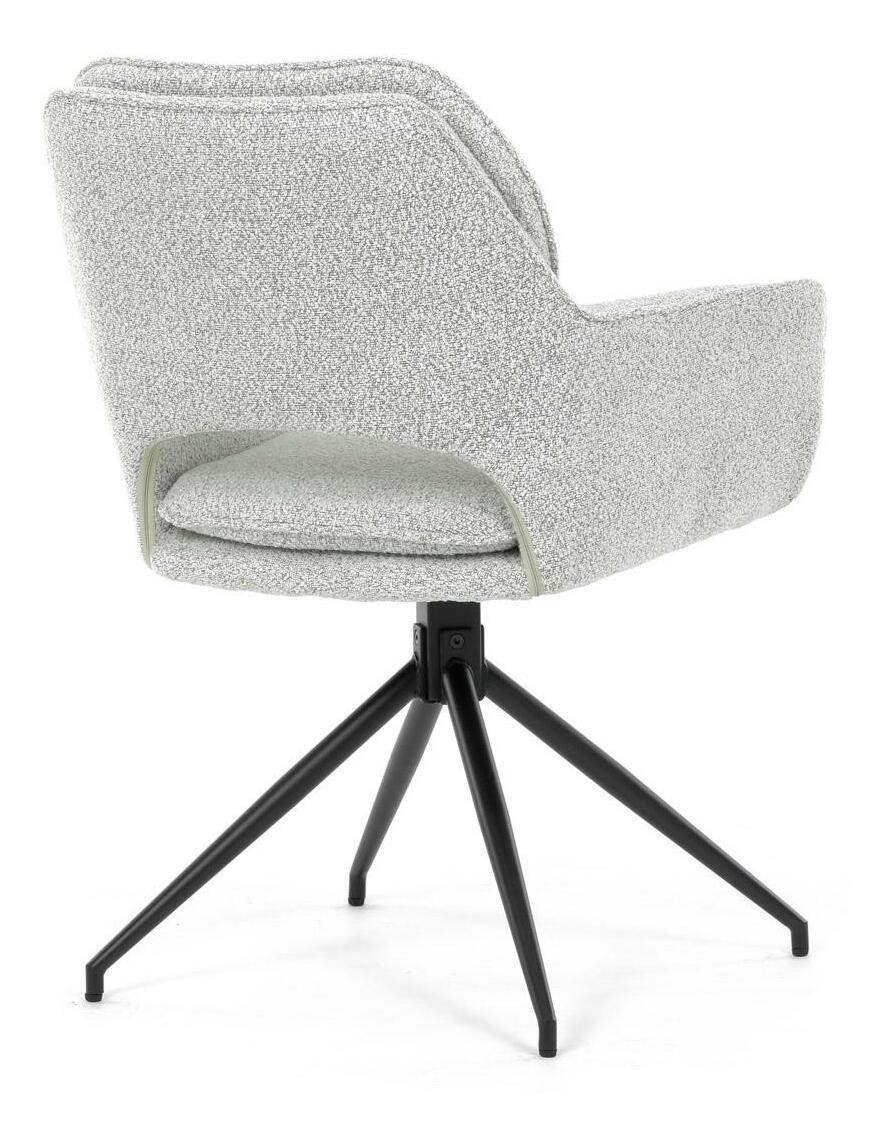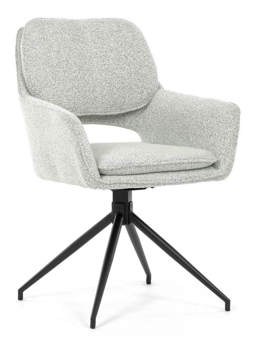 Moderní šedá jídelní židle nabízí elegantní a funkční řešení pro váš interiér. Pohodlné čalounění z hladké látky v kombinaci s výplní z PU pěny zajišťuje komfort i při delším sezení. Otočný mechanismus 180° s funkcí resetu vrátí židli do původní pozice, což je praktické zejména pro vizuální vzhled jídelny. Kovové nohy s centrálním podnožím zajišťují stabilitu a stylový industriální vzhled. Područky a vysoké opěradlo poskytují oporu pro maximální pohodlí. Tato židle je skvělou volbou pro moderní interiéry.