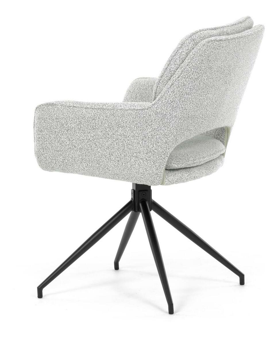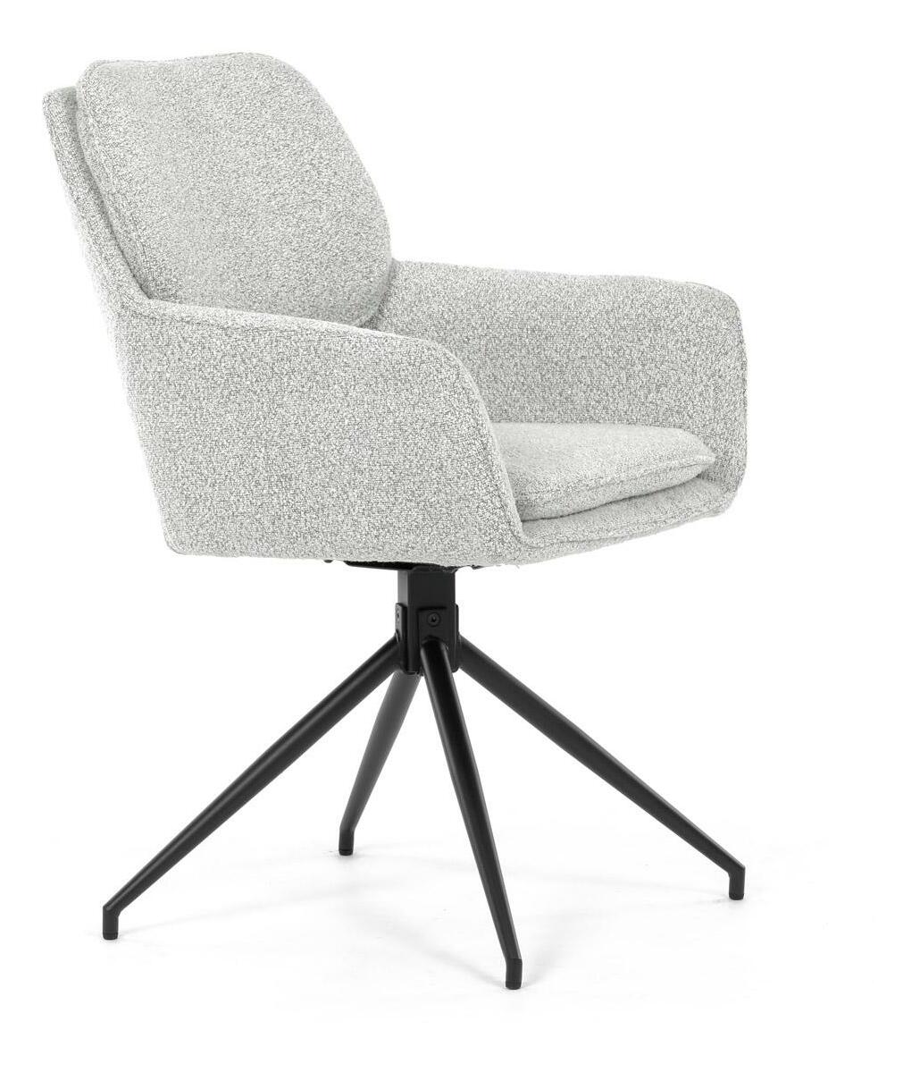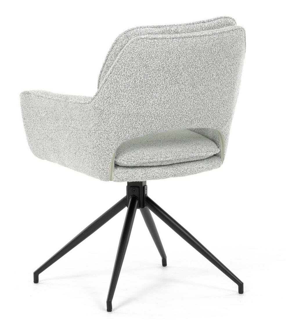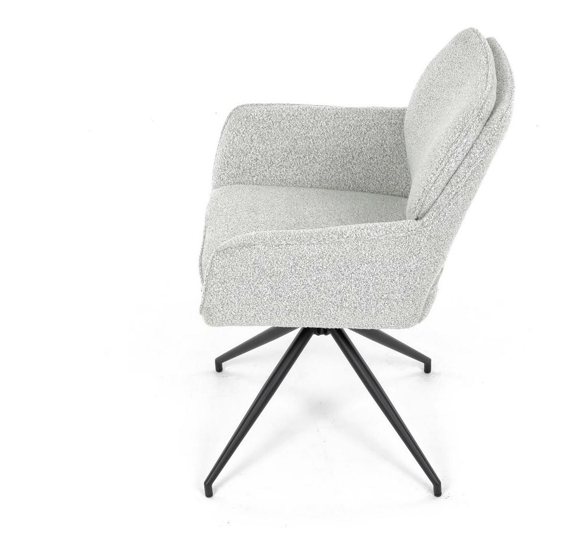 Moderní šedá jídelní židle nabízí elegantní a funkční řešení pro váš interiér. Pohodlné čalounění z hladké látky v kombinaci s výplní z PU pěny zajišťuje komfort i při delším sezení. Otočný mechanismus 180° s funkcí resetu vrátí židli do původní pozice, což je praktické zejména pro vizuální vzhled jídelny. Kovové nohy s centrálním podnožím zajišťují stabilitu a stylový industriální vzhled. Područky a vysoké opěradlo poskytují oporu pro maximální pohodlí. Tato židle je skvělou volbou pro moderní interiéry.