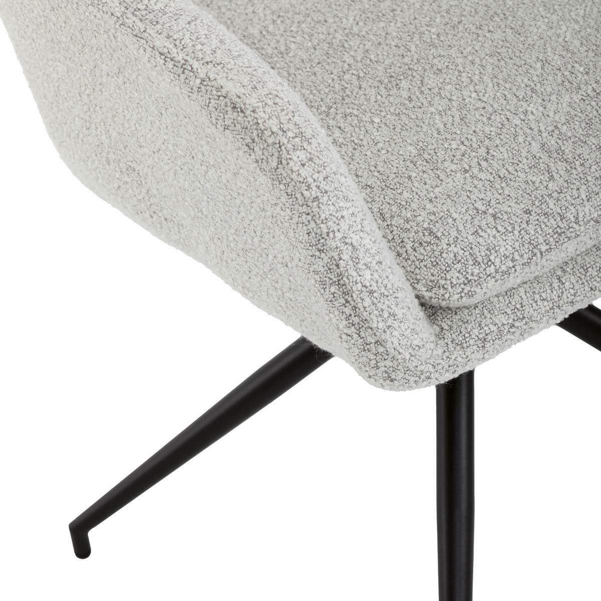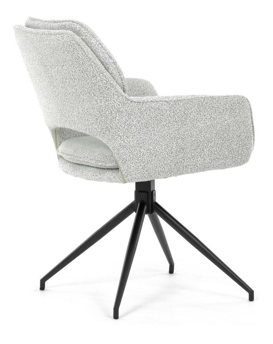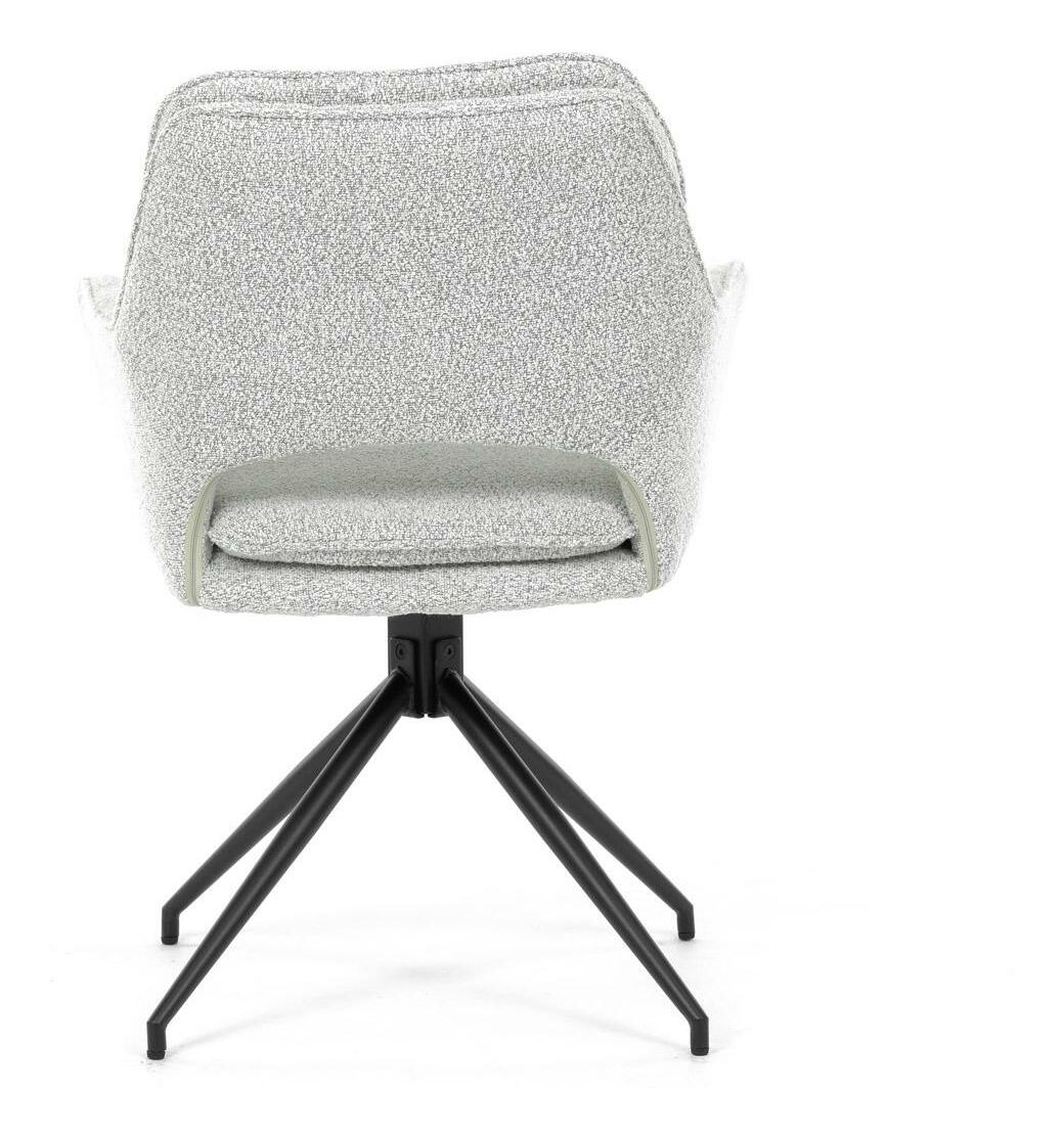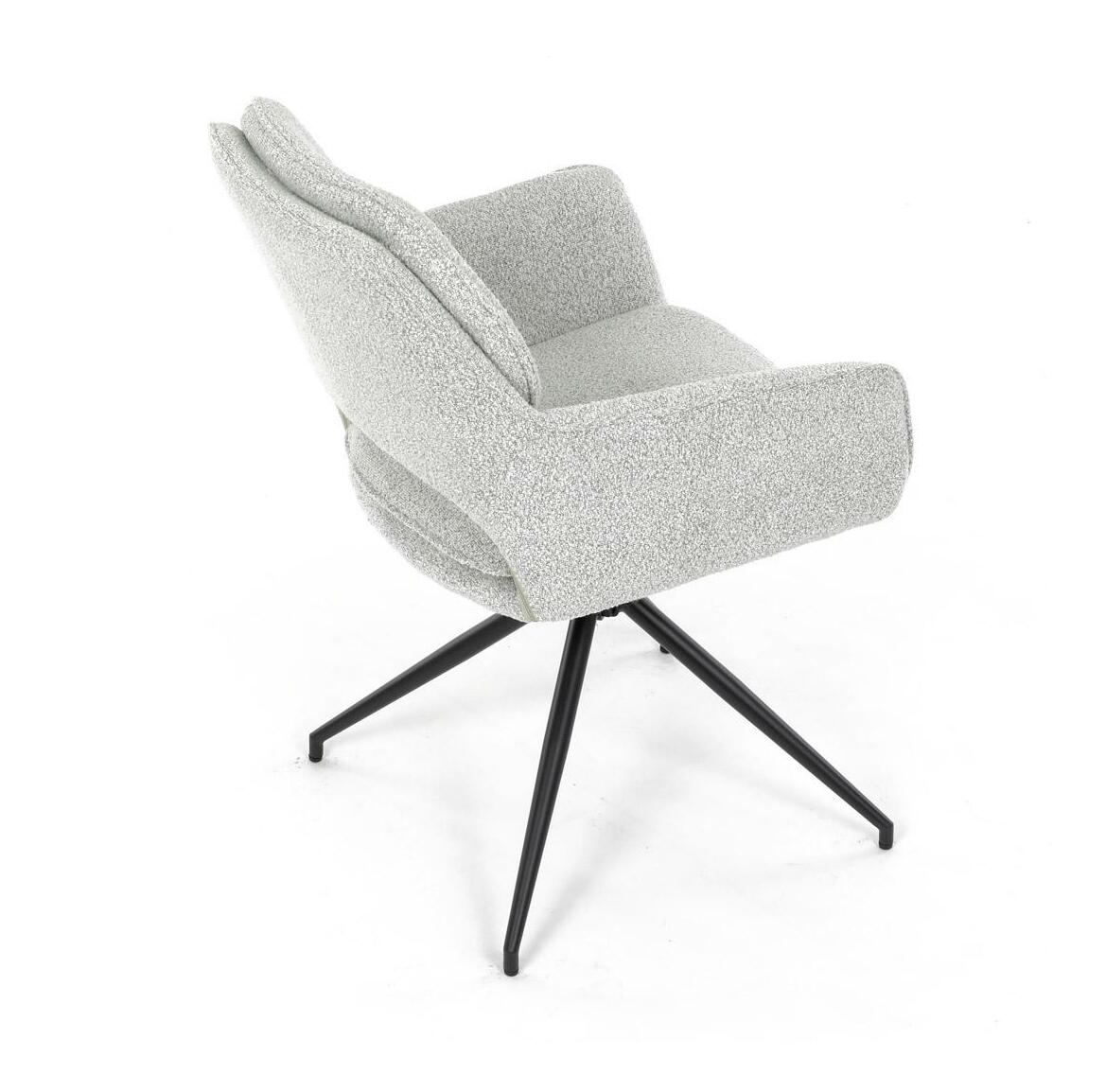 Moderní šedá jídelní židle nabízí elegantní a funkční řešení pro váš interiér. Pohodlné čalounění z hladké látky v kombinaci s výplní z PU pěny zajišťuje komfort i při delším sezení. Otočný mechanismus 180° s funkcí resetu vrátí židli do původní pozice, což je praktické zejména pro vizuální vzhled jídelny. Kovové nohy s centrálním podnožím zajišťují stabilitu a stylový industriální vzhled. Područky a vysoké opěradlo poskytují oporu pro maximální pohodlí. Tato židle je skvělou volbou pro moderní interiéry.
