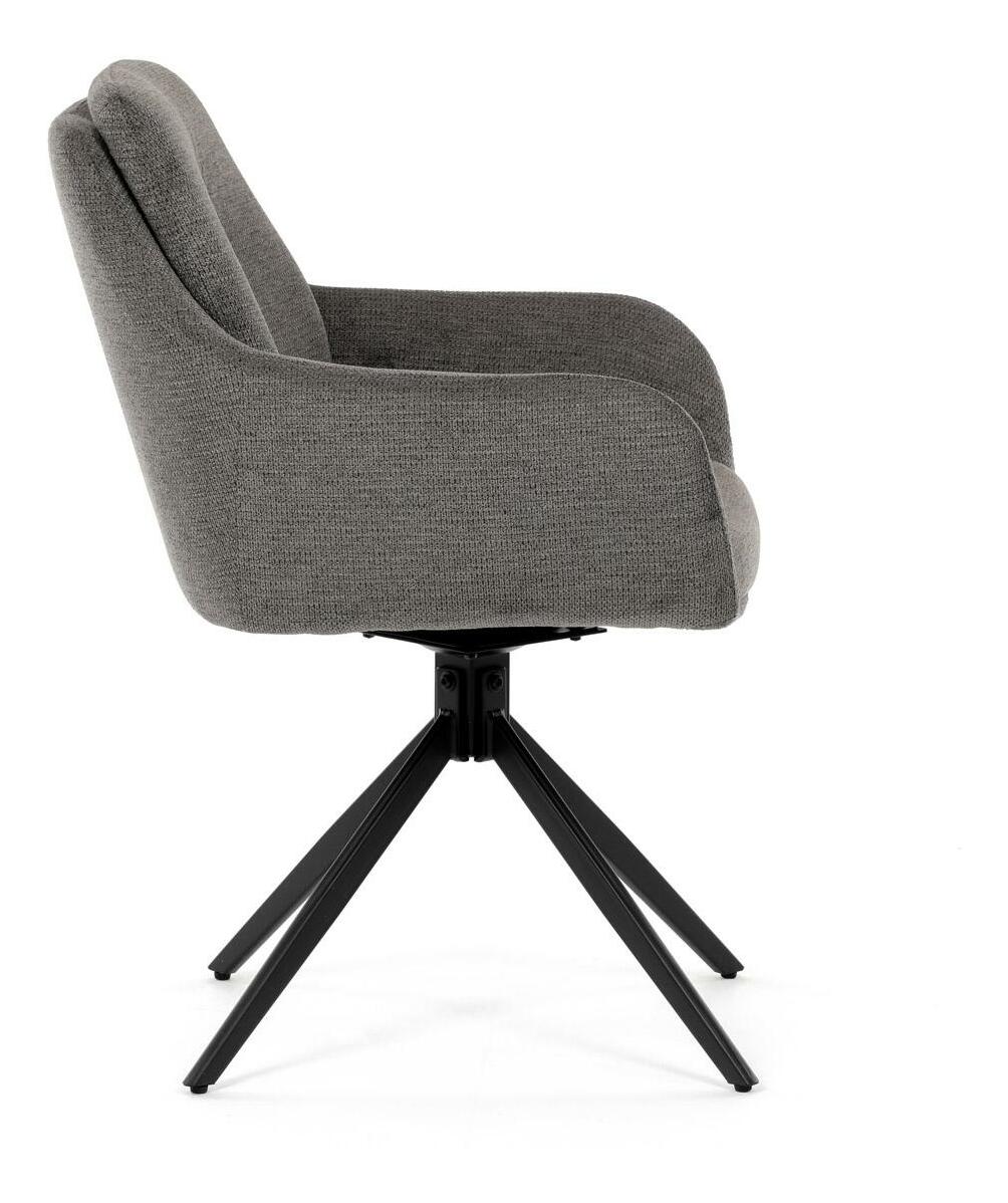 Moderní jídelní židle v elegantním šedém provedení kombinuje styl a komfort. Jemně hrubý potah z voděodolné látky zajišťuje praktické využití a snadnou údržbu, zatímco pružinové vlnovce v sedáku poskytují pohodlné posezení i při delším používání. Stabilní kovová podnož s obdélníkovým profilem v černé barvě dodává židli minimalistický vzhled. Otočný mechanismus s vratnou funkcí a dvojitý opěradlo zajišťují maximální funkčnost a flexibilitu. Ideální volba pro každou moderní jídelnu hledající dokonalou kombinaci stylu a praktičnosti.
