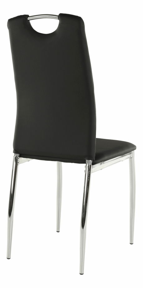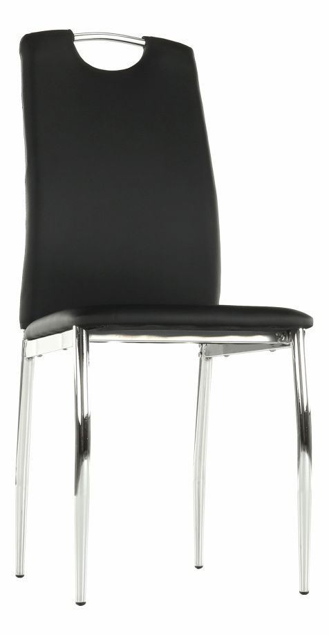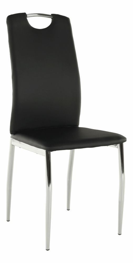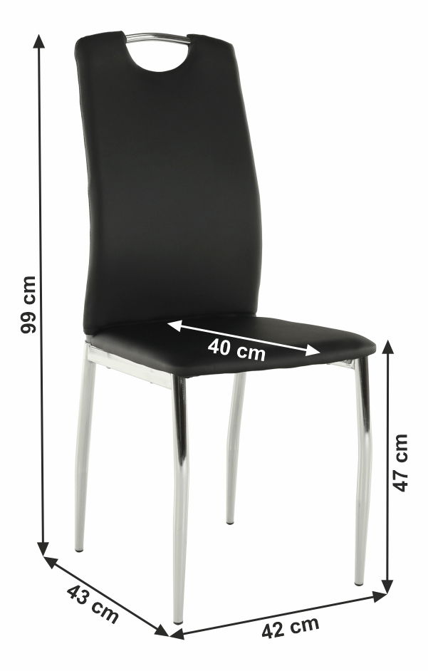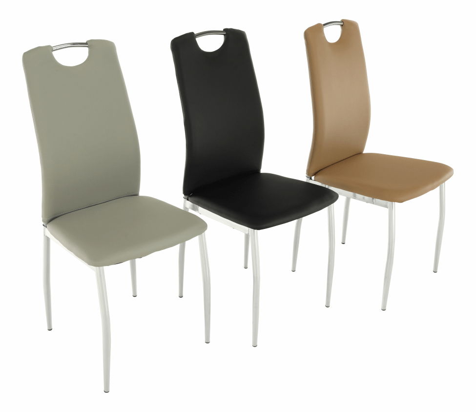 Jídelní židle je v ekokůži a nohy jsou pochromované.