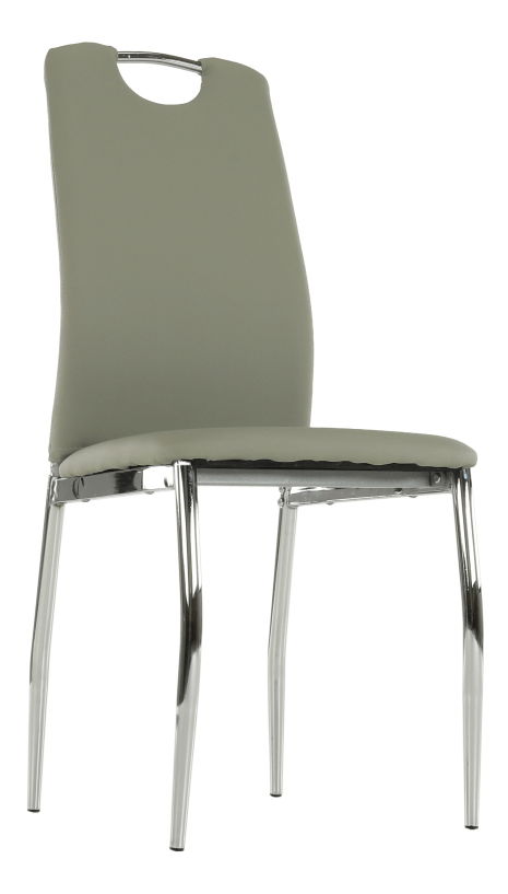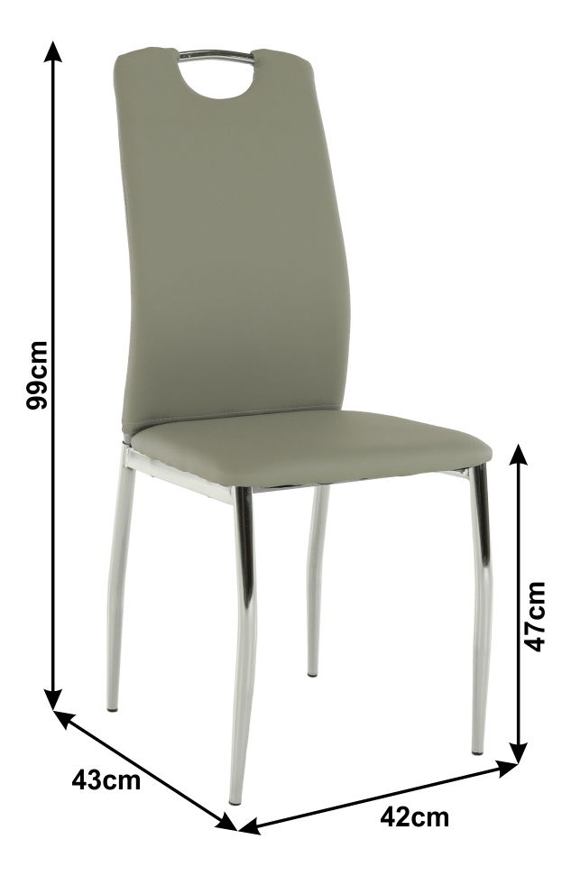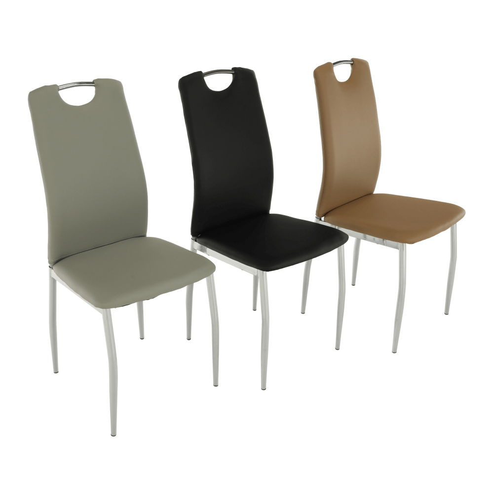 Jídelní židle je v ekokůži a nohy jsou pochromované.