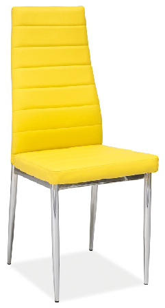 Elegantní čalouněná židle s prodlouženým opěradlem pro pohodlné sezení. Kovová konstrukce je pochromovaná. Čalounění je vyrobeno z ekokůže žluté barvy. Židle se hodí do jídelen, kanceláří či zasedacích místností.