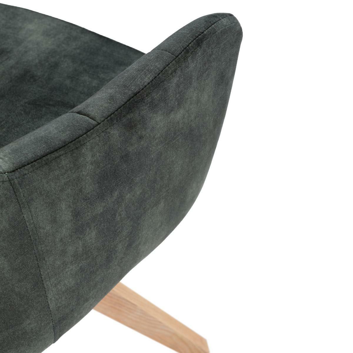 Elegantní čalouněná židle zaujme na první pohled svojí zelenou sametovou látkou, která dodává interiéru moderní šmrnc. Masivní nohy v přírodní barvě vytváří stabilní základ a skvěle harmonizují s celkovým designem. Komfortní područky zajistí pohodlí při sezení. Navíc, integrovaný 360° otočný mechanismus poskytuje maximální flexibilitu a pohybový komfort. Ideální volba pro stylové i funkční bydlení.
