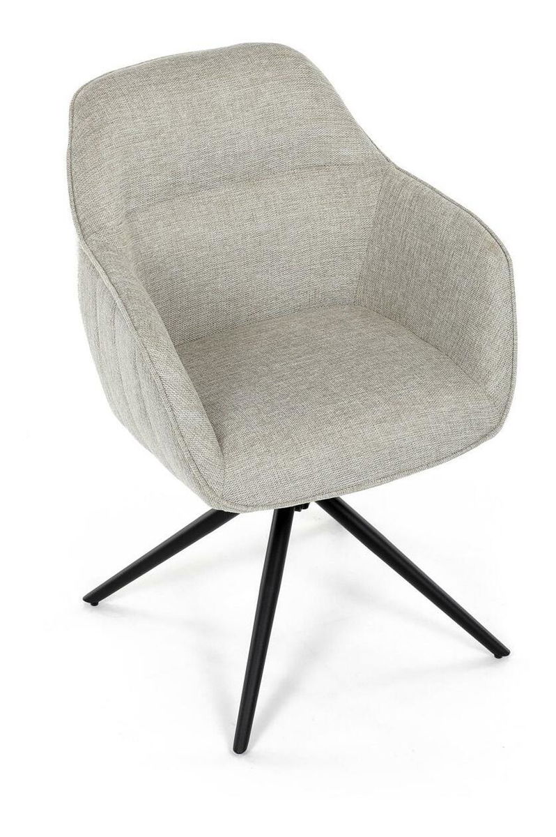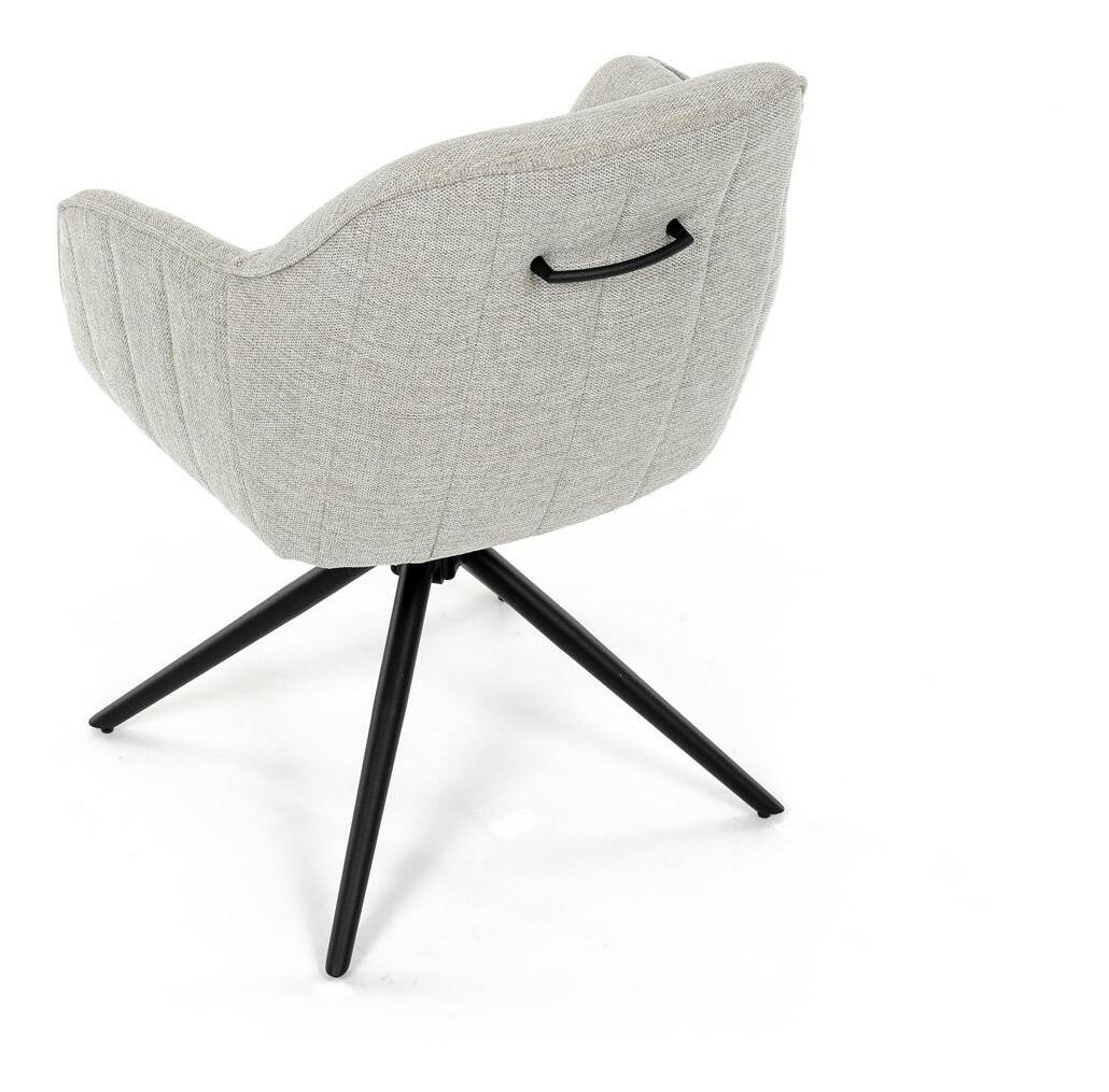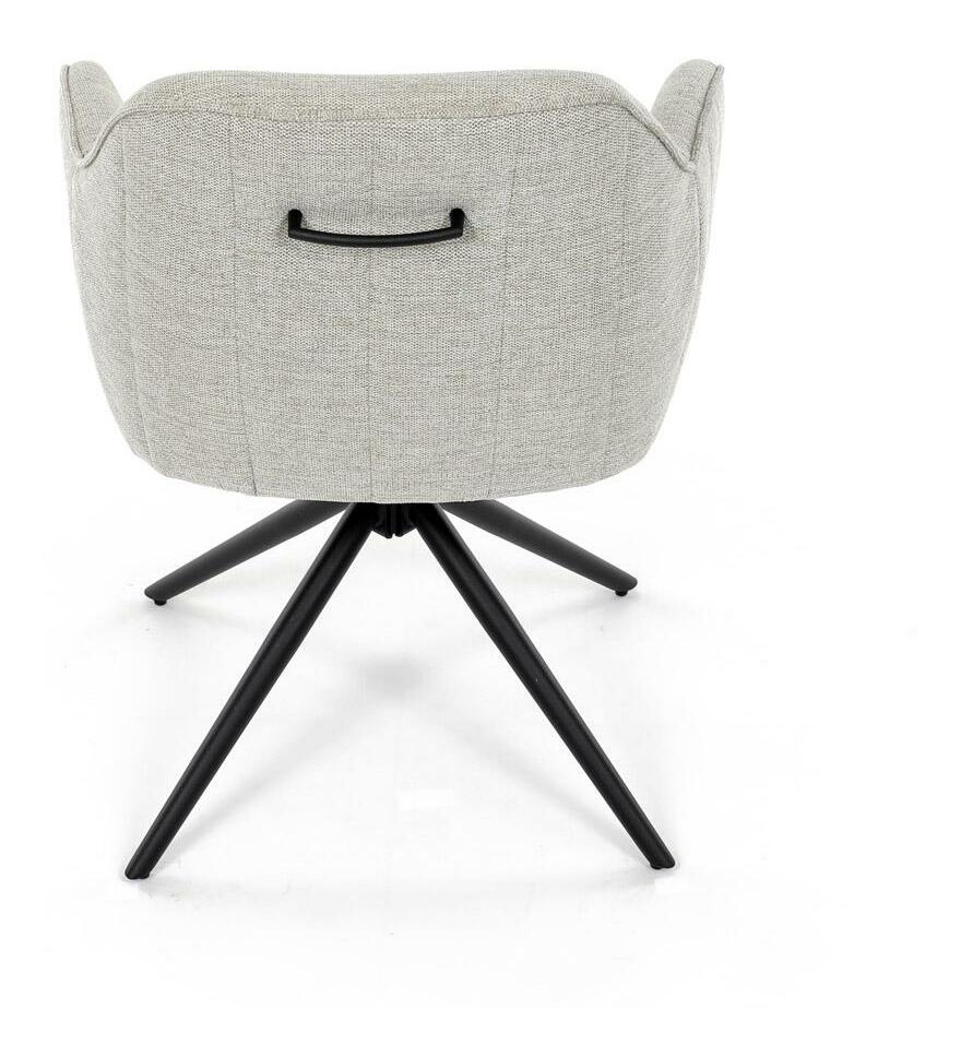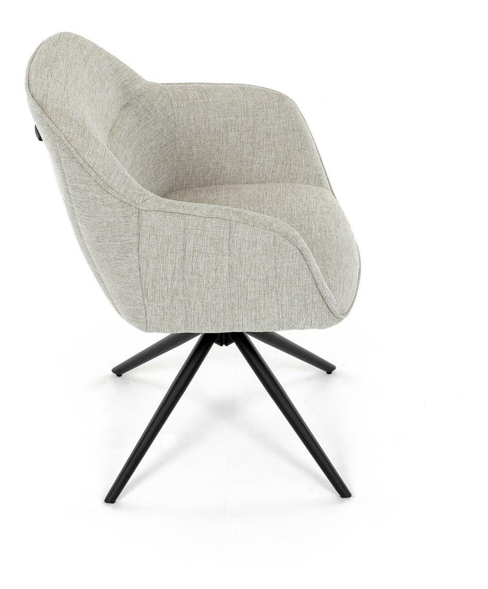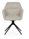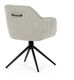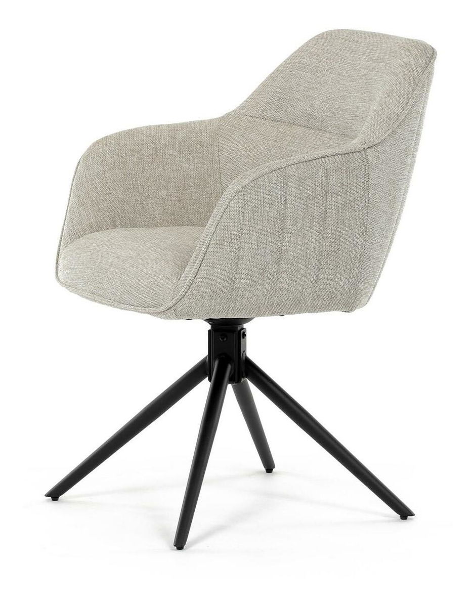 Moderní jídelní židle v krémové barvě s efektním prošitím zádové i přední části opěrky. Prošití je v barvě potahového materiálu. Zadní část opěrky je doplněna vkusným držadlem pro snazší manipulaci. Čtyři kovové nohy v matném práškovém nástřiku vycházejí z centrálního bodu uprostřed sedadla. Sedák je otočný o P90° L 90° s vratným mechanismem - funkce reset.
