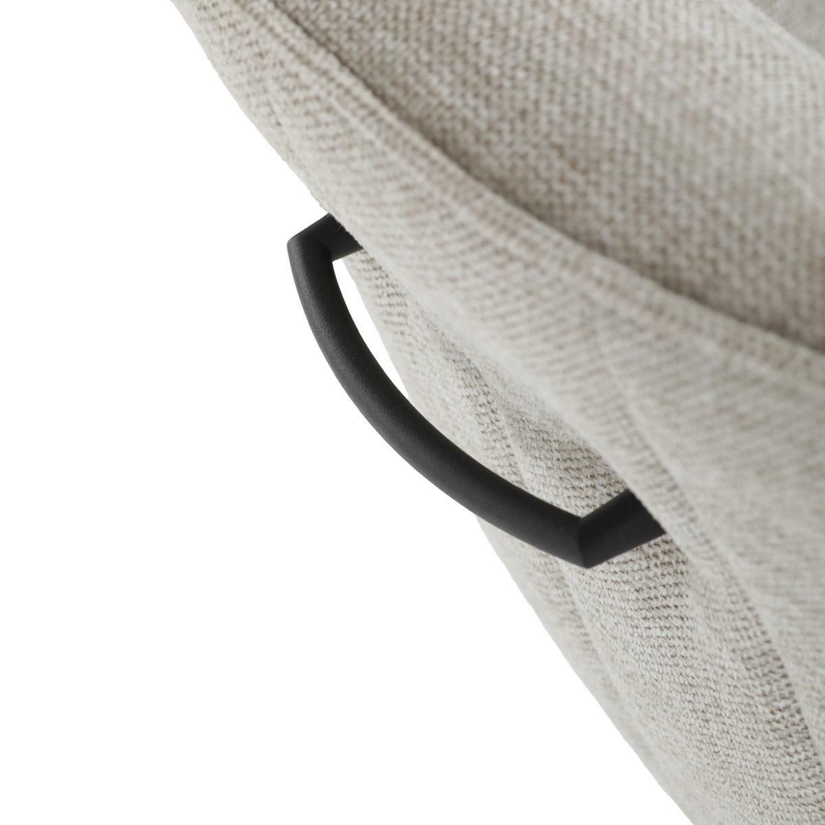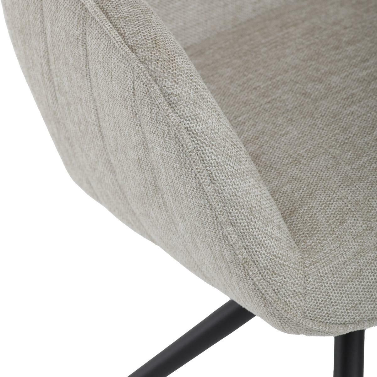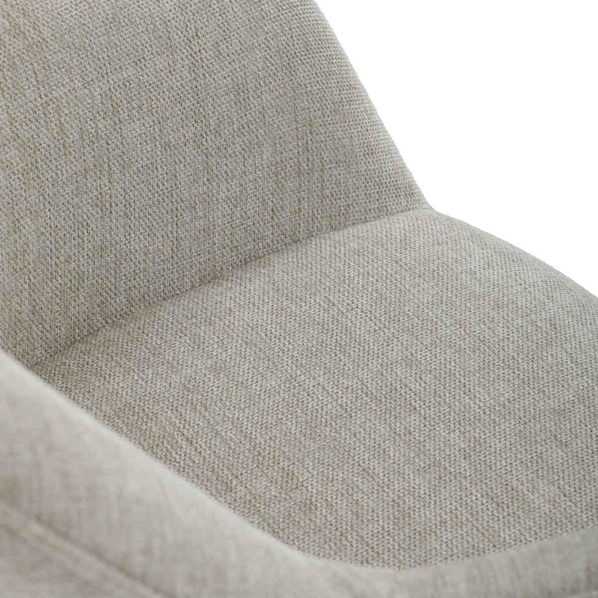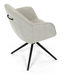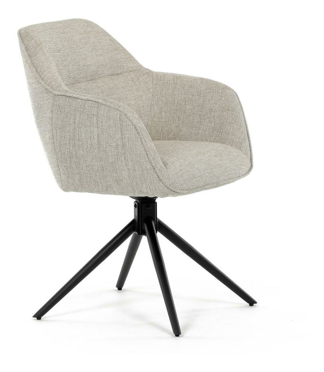 Moderní jídelní židle v krémové barvě s efektním prošitím zádové i přední části opěrky. Prošití je v barvě potahového materiálu. Zadní část opěrky je doplněna vkusným držadlem pro snazší manipulaci. Čtyři kovové nohy v matném práškovém nástřiku vycházejí z centrálního bodu uprostřed sedadla. Sedák je otočný o P90° L 90° s vratným mechanismem - funkce reset.