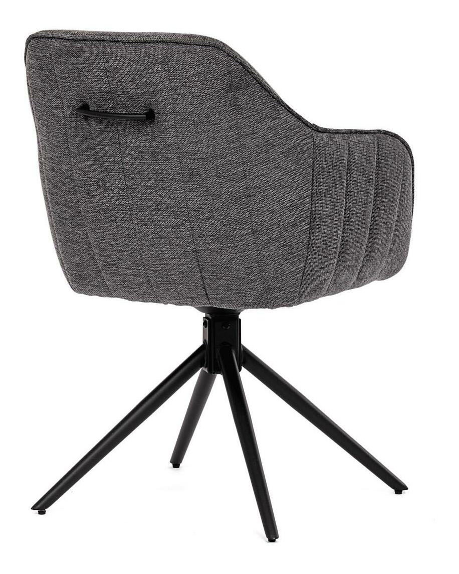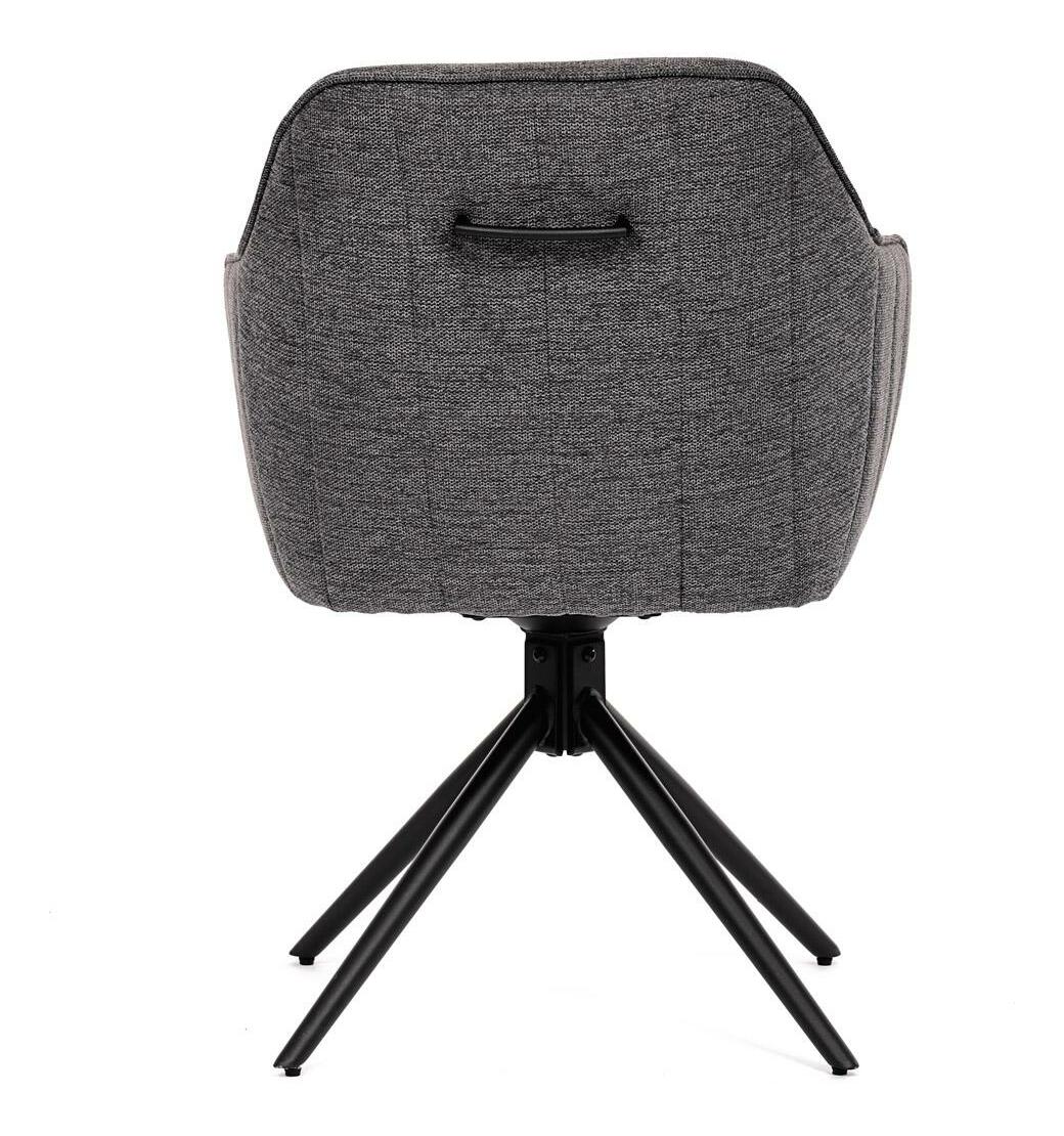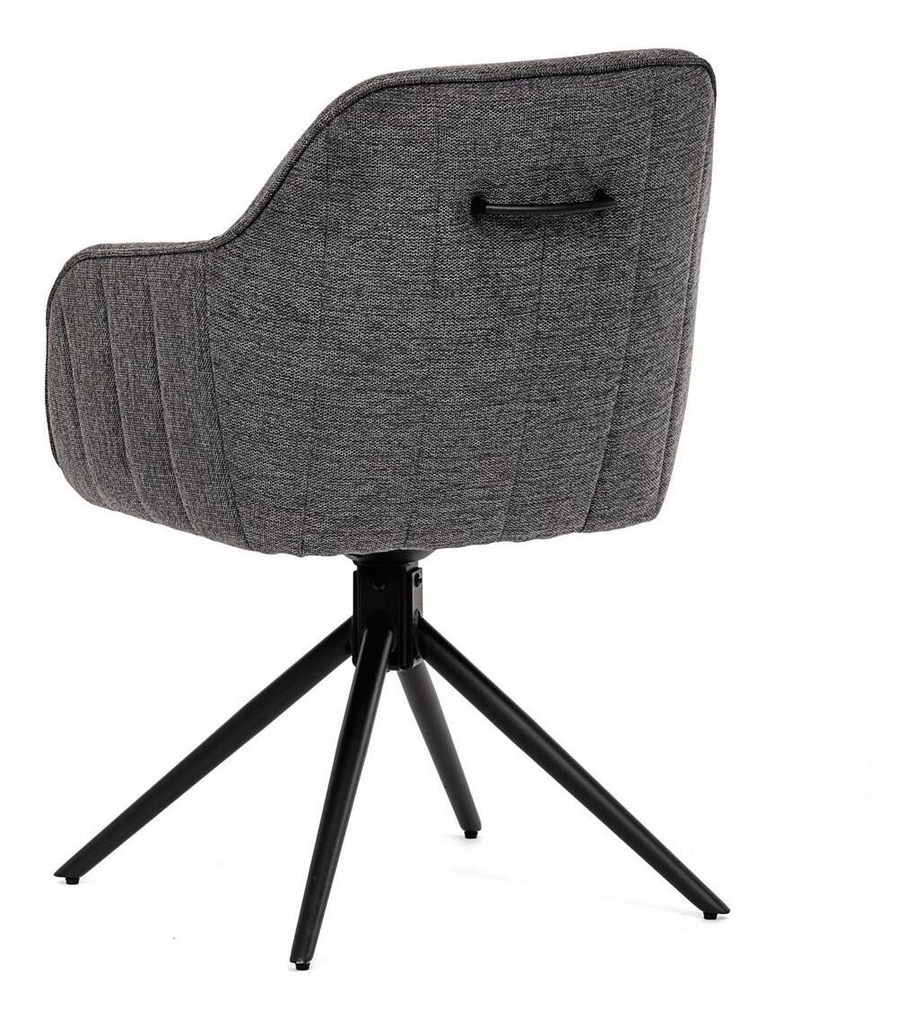 Moderní jídelní židle v šedé barvě s efektním prošitím zádové i přední části opěradla. Prošití je ve brvě potahového materiálu. Zadní část opěradla je opatřena vkusným madlem pro snazší manipulaci. Čtyři kovové nohy v matném práškovém nástřiku vycházejí z centrálního bodu uprostřed sedadla. Sedák je otočný o P90°L 90° s vratným mechanismem - funkce reset.