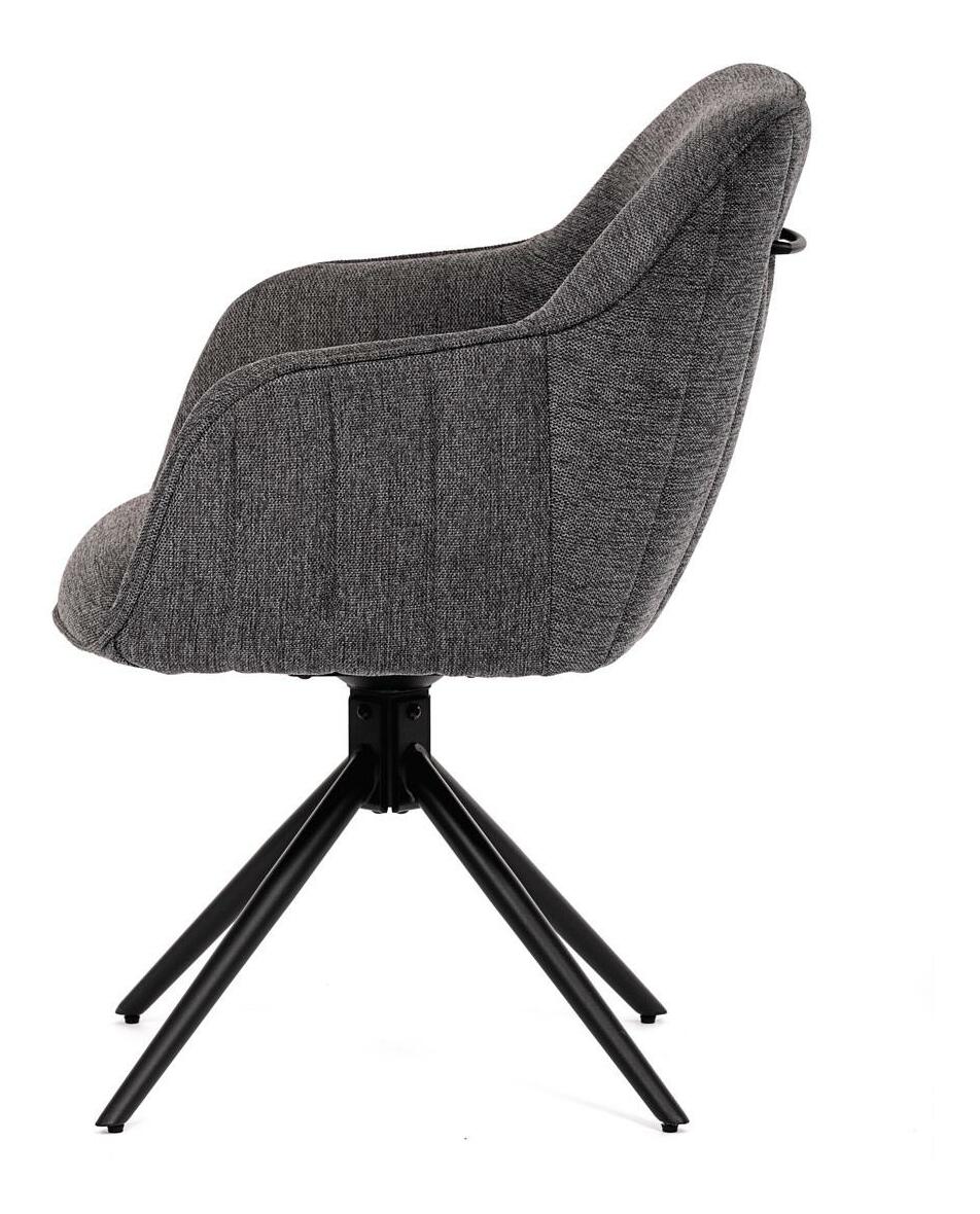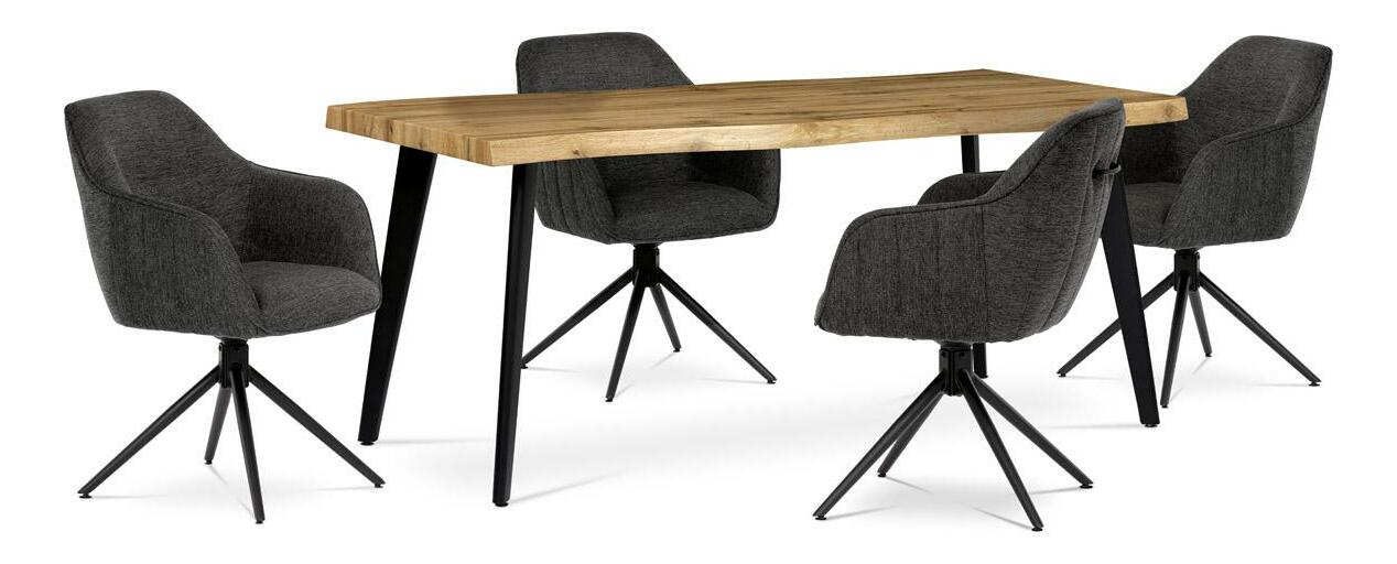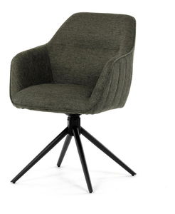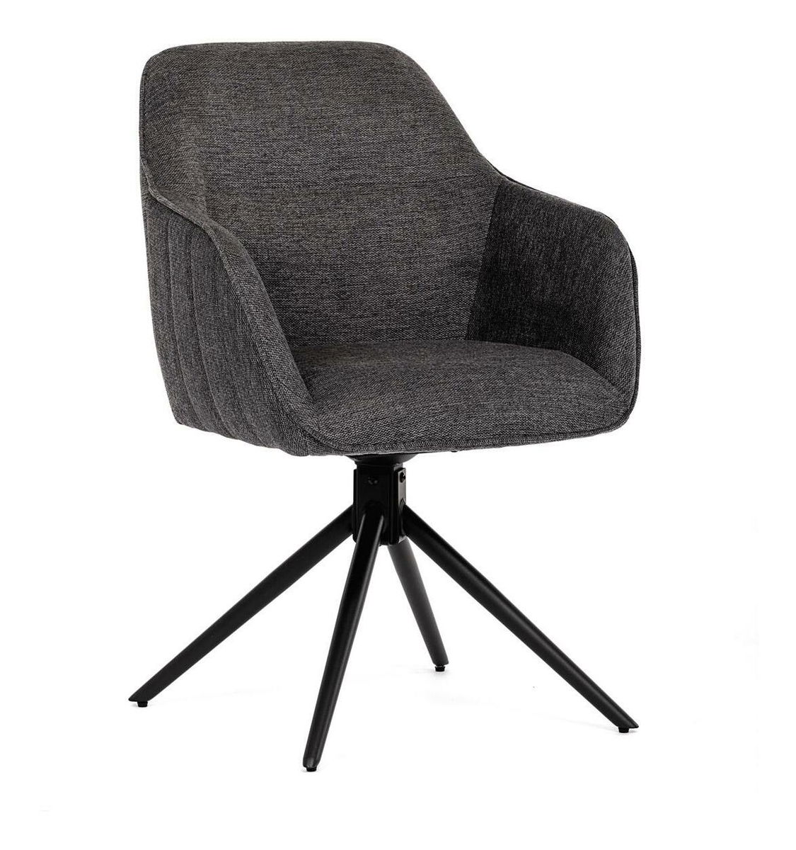 Moderní jídelní židle v šedé barvě s efektním prošitím zádové i přední části opěradla. Prošití je ve brvě potahového materiálu. Zadní část opěradla je opatřena vkusným madlem pro snazší manipulaci. Čtyři kovové nohy v matném práškovém nástřiku vycházejí z centrálního bodu uprostřed sedadla. Sedák je otočný o P90°L 90° s vratným mechanismem - funkce reset.