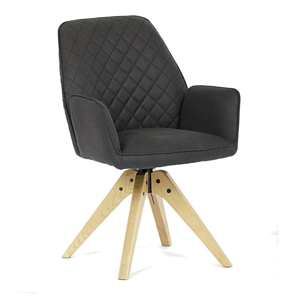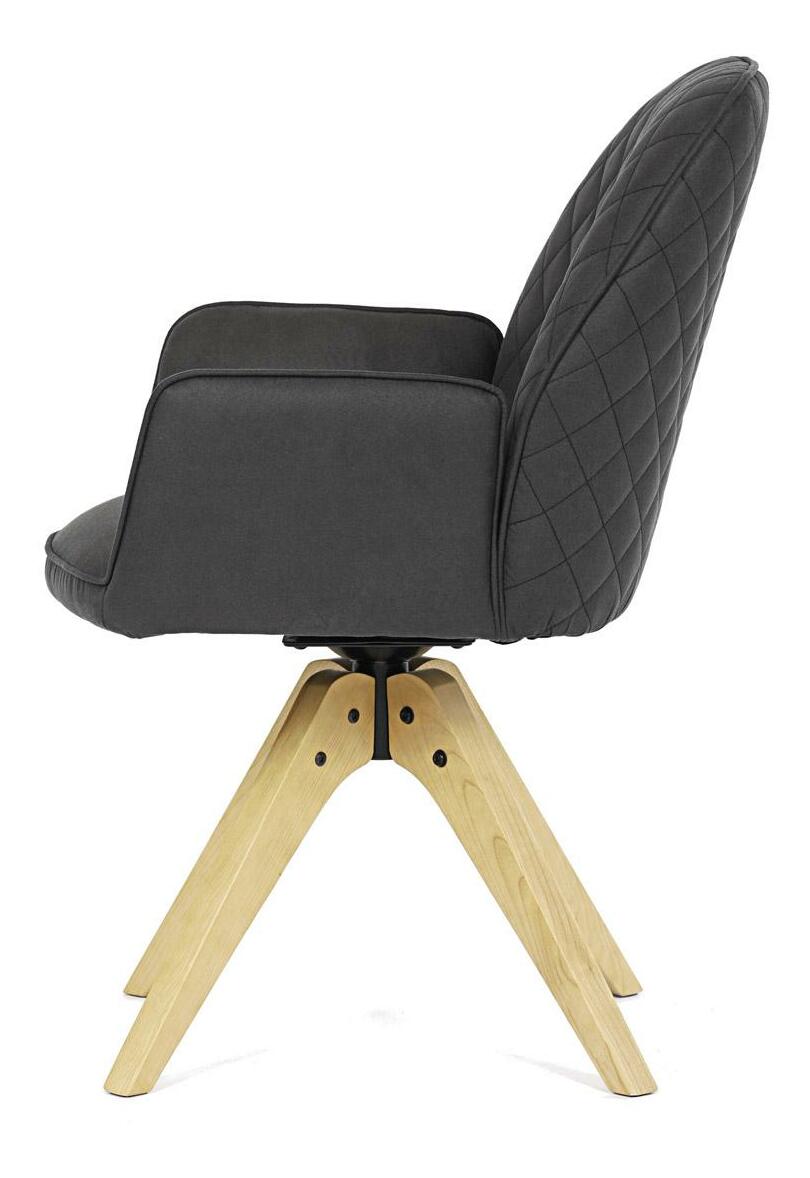Obklopte se luxusem díky jídelní židli s pohodlnými područkami. Černé čalounění se dokonale kombinuje s podnoží z přírodního masivu. Židle laděná do industriálního stylu poskytuje bezkonkurenční pohodlí a slouží jako moderní bytový doplněk. Kombinace kovové konstrukce a sofistikovaného matného dekoru odráží spojení odolnosti a elegance. Jídelní židle je vybavena revoluční funkcí návratu otočného systému. Systém umožňuje židli rychlé otočení do základní polohy, což zlepšuje manipulaci a zvyšuje pohodlí. Černé prošití dodává designu soudržnost a zajišťuje příjemné posezení při obchodním jednání i rodinném obědě. Nádech opulence spolu s náznakem syrového šarmu definuje podstatu jídelní židle s područkami. Kombinací černé textilie a nohou z přírodního masivu barevná paleta nekončí – v nabídce máme i další barevné varianty. Díky moderní praktické funkčnosti je jídelní židle dokonalou volbou pro každého, kdo touží po moderní, a přesto pohodlné židli.