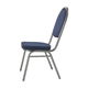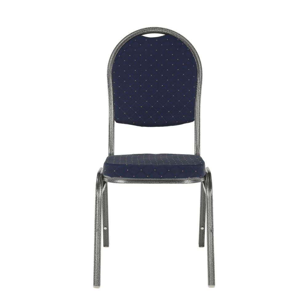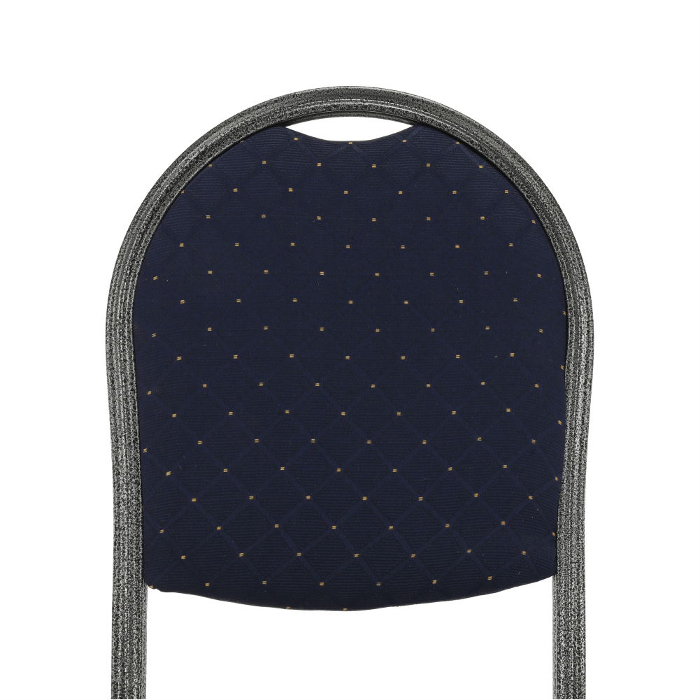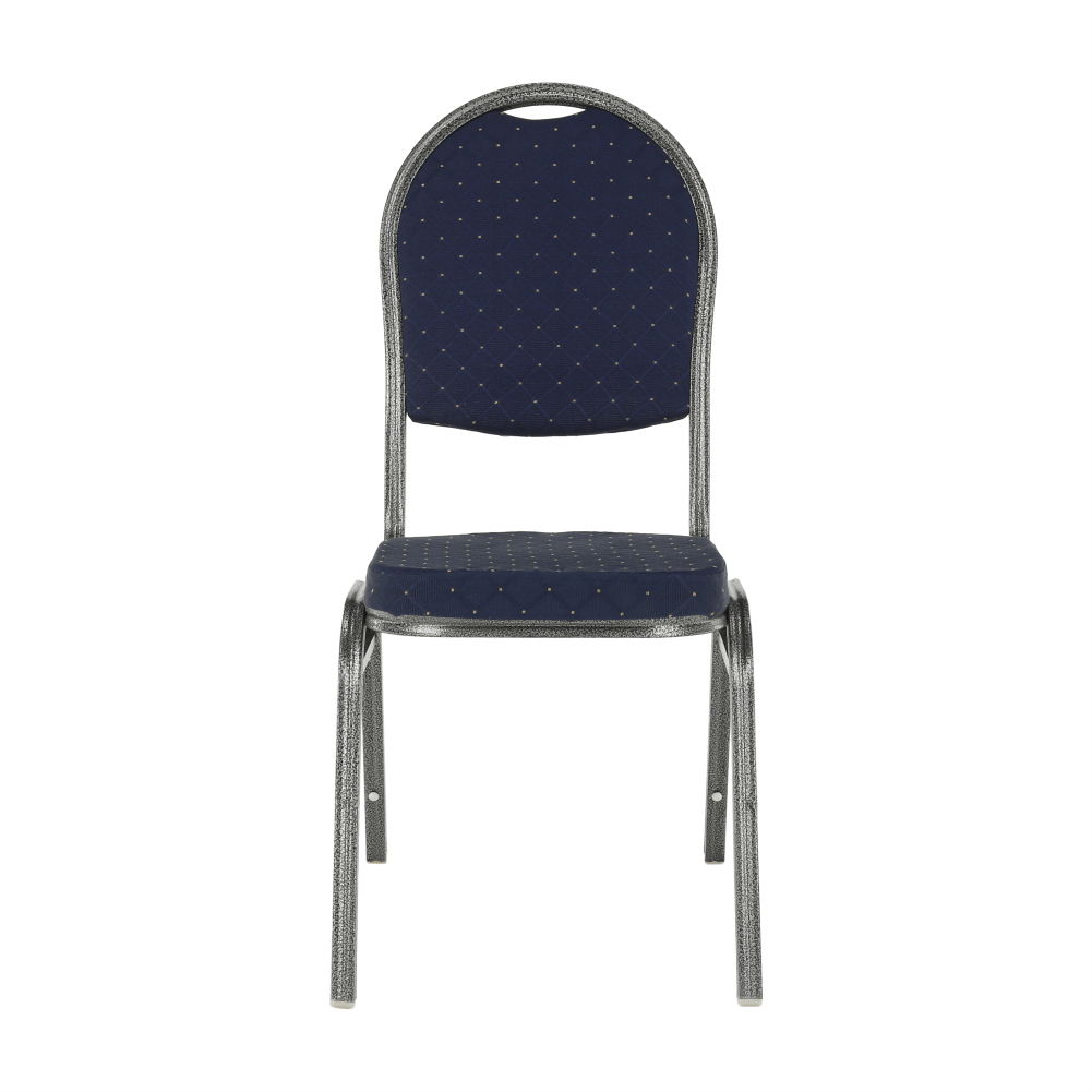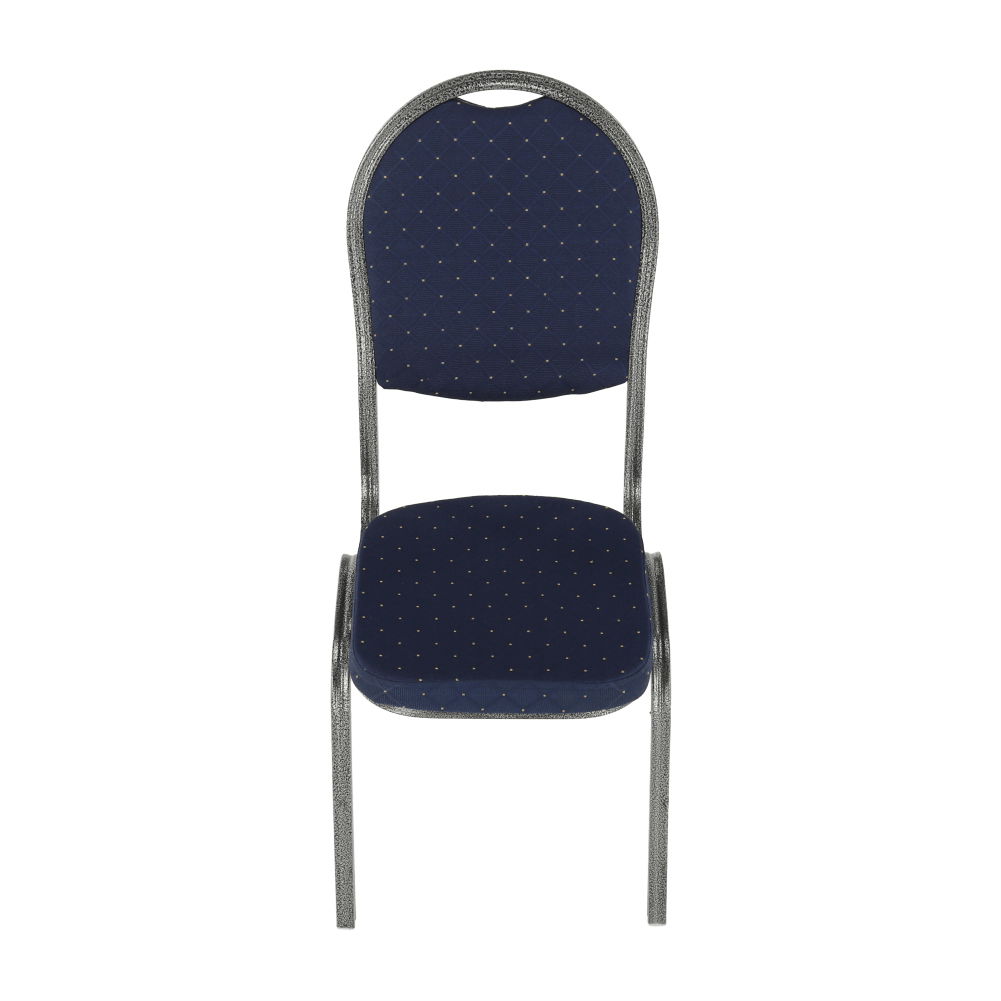Židle Jeff vyniká hezkým elegantním designem. Má šedý rám a modrý vzorovaný potah. Židle je stohovatelná a ušetří váš prostor.