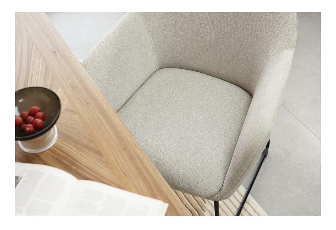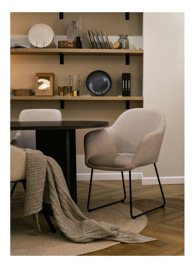 Čalouněná židle s područkami je dokonalým řešením pro lidi, kteří hledají kombinaci pohodlí a stylu. Židle je elegantním kusem nábytku, který harmonicky spojuje pohodlí a styl. Hodí se jak do moderních, minimalistických prostor, tak i do klasičtějších aranžmá a dodává křeslu nádech elegance a sofistikovanosti. Světle béžové čalounění dodává židli jemný, moderní vzhled a zároveň vnáší do interiéru teplo. Díky jemnému odstínu je snadné sladit nábytek do různých aranžmá a barev stěn. Jednou z předností židle jsou praktické područky – dodávají výjimečný komfort a umožňují pohodlnou oporu rukou při sezení. To je důležité zejména při dlouhodobém používání židle, například při práci za stolem nebo při jídle. Další informace: potah je vyroben z látky Icon 02, Icon je stylová látka s jemnou vazbou. Odolné vůči oděru, tření a žmolkování. Easy-Cleaning Technology umožňuje odstranit nečistoty vodou a mýdlem, měkké sedátko a profilovaná opěrka zajišťují pohodlí při používání, černé ocelové nohy zaručují stabilitu a odolnost, maximální nosnost 120 kg.