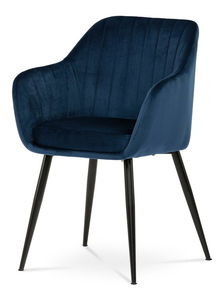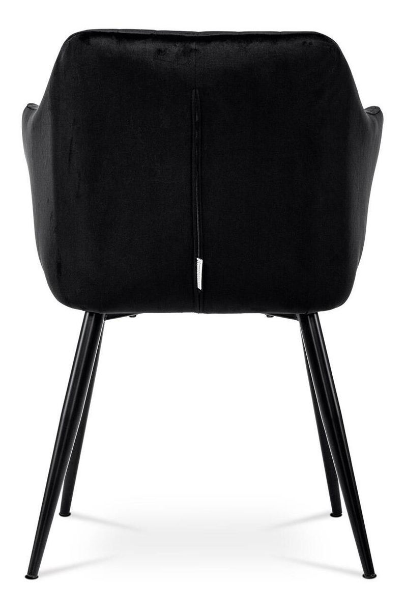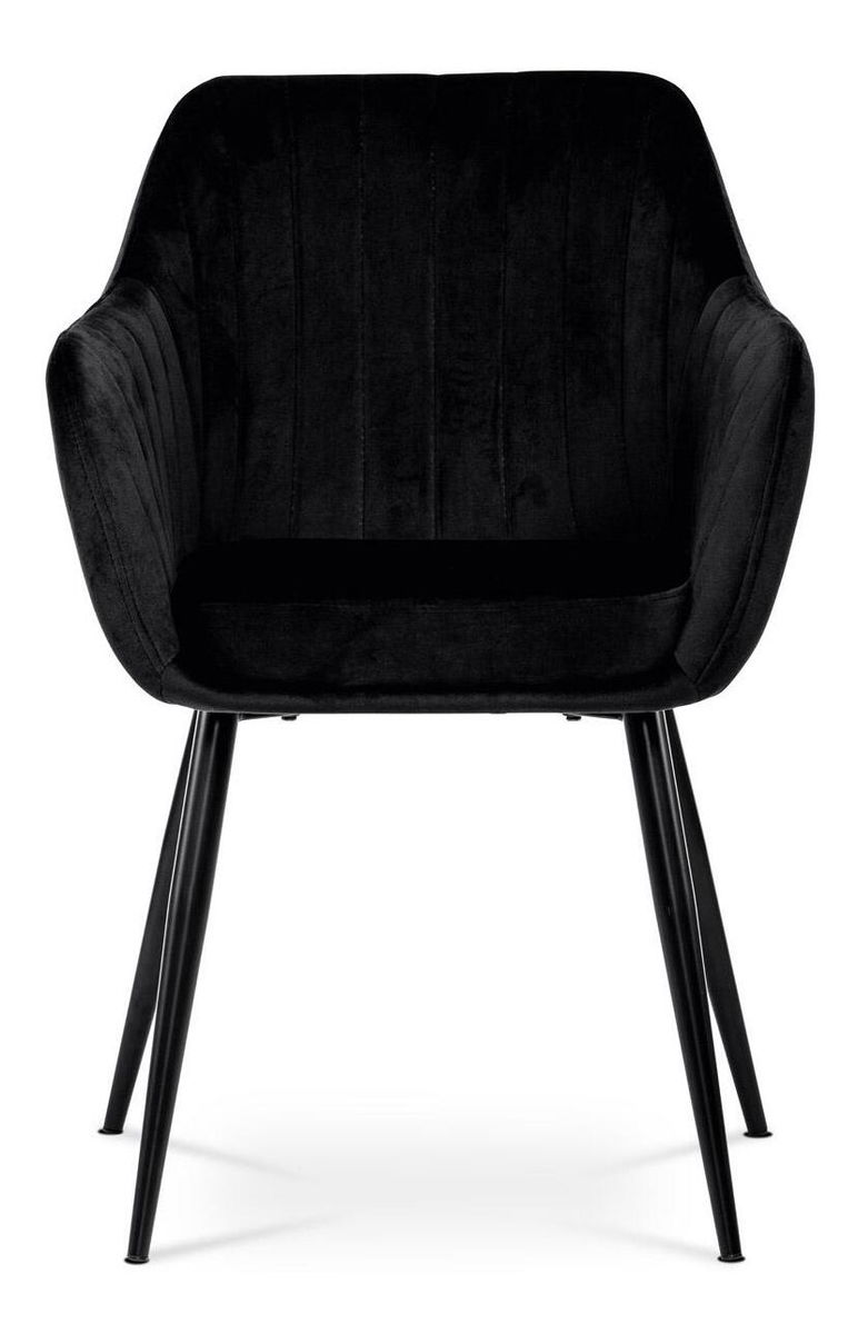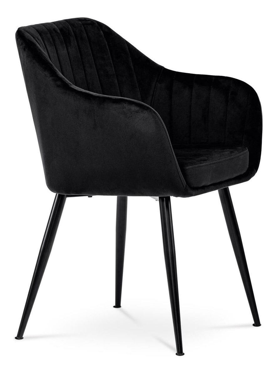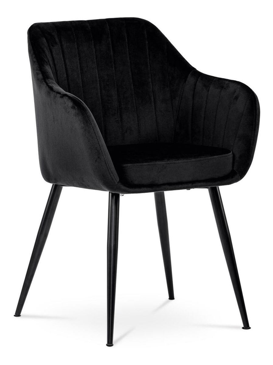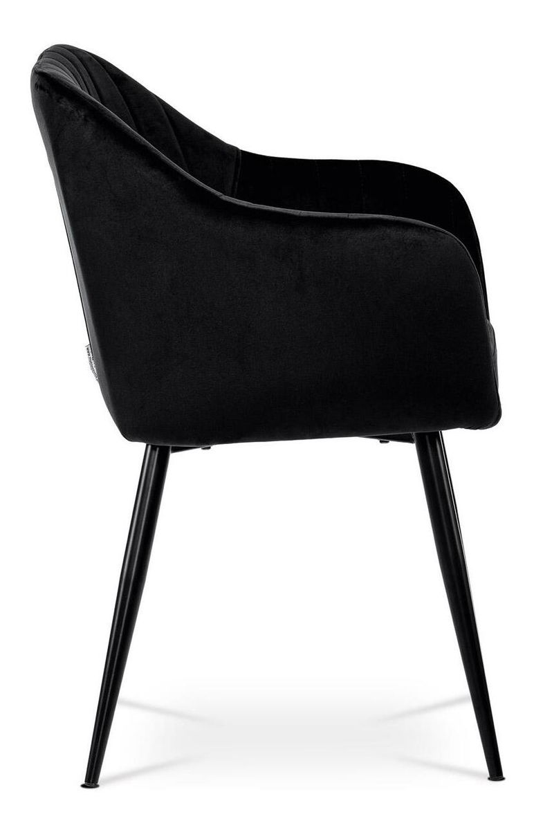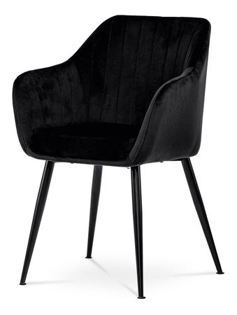 Dokonalý design, industriální styl a perfektní pohodlí je pro tuto židli samozřejmostí. Skořepina sedáku i opěradla má pevnou kovovou kostru, potah z velmi kvalitní sametové látky v matném provedení a nadčasovém a luxusním odstínu černé. Polstrování je z PU pěny. Bonusem pro zvýšení pohodlí posedu je 8 cm zvýšený a extra polstrovaný sedák a praktické pohodlné opěrky s opěrnou plochou ve výšce 69 cm od podlahy. Příjemný dekorativní prvek vytvářejí svislé prošití vnitřních částí opěradla i boků. Použitá látka je velmi odolná a perfektně se čistí. Stabilitu židle zajišťují čtyři kónické kovové nohy s kvalitním práškovým nástřikem v černé matné barvě. Ukončeny jsou černými plastovými kluzáky, zabraňující poškození tvrdých povrchů podlah. Nohy mají kruhový průřez o průměru od 2 do 3,5 cm v horní části. Všechny tyto plus produkují z tohoto modelu skvělou volbu pro Váš výběr zařízení jídelních nebo obývacích prostor, ale skvěle se hodí také jako konferenční židle do zasedacích místností. Nosnost židle je až 120 kg. Základní rozměry jsou - celková šířka 58 cm, celková hloubka 57 cm, celková výška 84 cm, výška sedu 52 cm a hloubka sedu 43 cm.