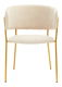 Čalouněná židle je vynikající volbou pro lidi, kteří hledají nábytek s moderním charakterem, který zároveň zajišťuje pohodlí a estetický vzhled. Čalouněná židle je elegantním a moderním modelem, který dokonale zapadne do různých interiérů. Korpus nábytku je potažen béžovým sametovým čalouněním, které působí mimořádně vkusně a navíc je jemné a příjemné na dotek. Charakteristickým znakem židle je její zlatý štíhlý rám, který kompozici dodává lehkost a modernost. Rám je vyroben z kovu s práškovým nástřikem, což zajišťuje trvanlivost a odolnost proti poškození. Sedák a opěradlo židle byly pečlivě profilovány a vyplněny nábytku pěnou pro zajištění maximálního komfortu používání Detaily produktu: měkký sedák a profilované opěradlo zajišťují pohodlí při používání, kvé nožičky zajišťují vysokou stabilitu, na dotek příjemné sametové čalounění. barva: zlatá základna a béžový korpus, nábytek pro svépomocnou montáž.