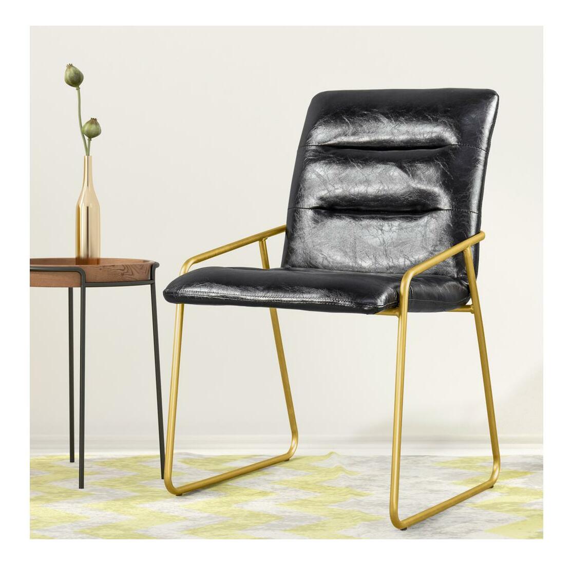 Elegance kůže bez poškození zvířat? Je to možné! Jediné, co musíte udělat, je sáhnout po jedinečné židli! Výrobek je čalouněn nejnovější polyuretanu (PU) ekokůží, která velmi připomíná pravou kůži. Materiál je mimořádně odolný vůči mechanickému poškození, takže bude vaše oči těšit svojí nedotčenou krásou po mnoho let. Na materiál také nepůsobí UV záření, které nezpůsobí ztrátu barvy ani praskliny, takže výrobky jím pokryté lze bez obav umístit i do těch nejslunečnějších místností. Ekokůže je ceněná i proto, že neabsorbuje vodu, takže v ní nerostou žádné plísně ani bakterie, díky čemuž je bezpečná pro alergiky a děti. Při jeho výrobě navíc nedošlo ke zranění zvířat, což jistě ocení všichni lidé, kterým záleží na jejich osudu. Nábytek je namontován na kvalitně vyrobených zlatých ocelových nohách. Tyto prvky hypnotizují svým jedinečným tvarem připomínajícím obdélníkový rám s prodlouženou horní částí vytvářející subtilní područky. Takto postavený nábytek se jistě stane skutečnou hvězdou každého prostoru – od moderního až po klasiku – a zároveň vám poskytne pohodlné místo k odpočinku. Nečekejte a vytvořte si byt svých snů se židlí ještě dnes!