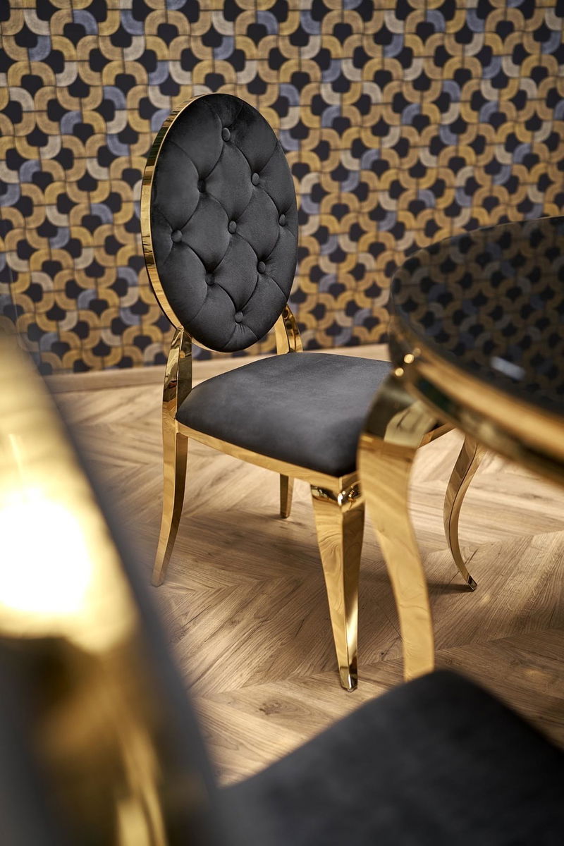 ZobrazitPředstavte si židli, která dělá víc než jen službu – která mluví stylem. Jídelní židle Regino v černé a zlaté barvě je synonymem odvážného designu a nadčasové elegance. Bohatá černá sametová látka a zlatý kovový rám vytvářejí ikonickou dvojici, která vnáší do prostoru opulence a šmrnc. Nechte tuto židli stát se zlatým bodem vaší jídelny – doplňte ji ke stolu Regino 2 a vytvořte harmonický celek, který zaujme každého hosta. Luxus začíná detaily - a Regino černá a zlatá je důkazem, že styl se skrývá iv židli.