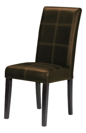 Elegantní jídelní židle bude dokonale dotvářet Vaši jídelnu. Čalouněná je kvalitní textilní kůží PU tmavohnědé barvy. Pro dotvoření krásného designu je prošívaná bílou nití. Dřevěné nohy jsou v barvě ořechu tmavého.