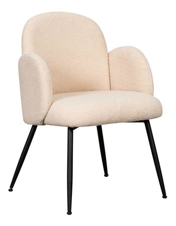 Sníte o krásně upravené jídelně nebo hledáte stylovou židličku do práce či toaletní stolek do ložnice? Náš návrh vás jistě okouzlí Model je moderní a pohodlné křeslo s područkami, které dodá styl a pohodlí každému interiéru. Je vyrobena z kvalitních materiálů, konkrétně boucle látky. Tato látka má měkký, nadýchaný povrch a jemné smyčky, které vytvářejí jedinečný vzor a texturu. Béžový odstín čalounění je neutrální a snadno sladitelný s ostatním nábytkem a dekoračními prvky v místnosti. Originální forma židle přitahuje pozornost a dodává charakter. Židle je navržena s ohledem na pohodlí a má pohodlné područky, které poskytují oporu pažím a zvyšují pohodlí při sezení Detaily produktu: boucle látka - jedinečný typ látky s charakteristickou texturou nadýchaných smyček, dodává eleganci a pohodlí., jemná béžová. barva čalounění a klasická černá nohy vytvářejí vkusnou a harmonickou kombinaci, chybějící područky znamenají, že židle se perfektně zasouvají pod stolovou desku standardní výšky, kvé nohy zaručují nábytku náležitou stabilitu a značnou odolnost.