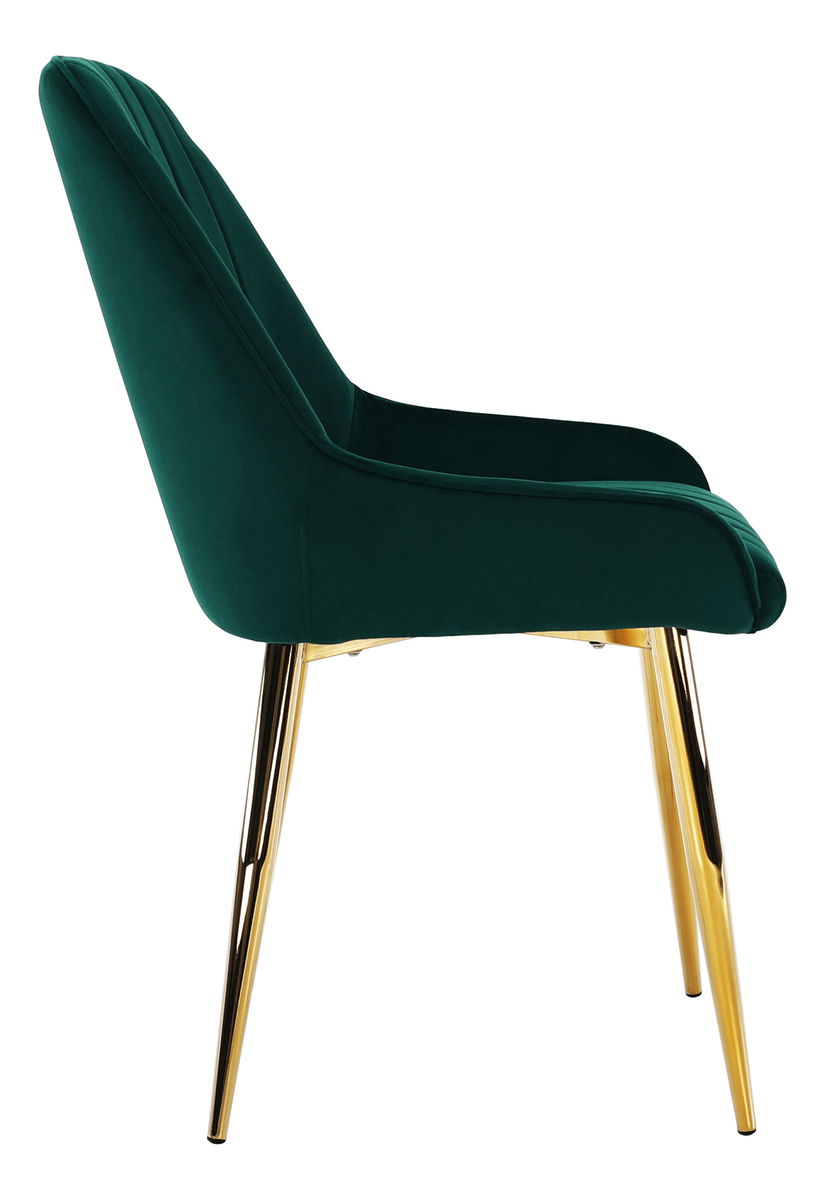 Není nad ideální představu, když se u stolu setká téměř celá rodina. Komfortní posezení a pohoštění dokáže dotvořit naše nová jídelní židle Soddy. O jejích výhodách vás už na pohled přesvědčí samotný design, který je velice atraktivní. Její sedací část s opěrkou na záda a ruce jsou očalouněny kvalitní Velvet látkou v barevném provedení smaragdová. Exkluzivní design dodávají židli kovové nohy v provedení gold chrom-zlatý.