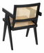 Doplňte svůj obývací pokoj touto výjimečnou židlí s jedinečným designem, která dodá osobitý charakter každému prostoru. Je vyrobena z velmi kvalitního mahagonového dřeva, které je vzácné zejména díky své odolnosti a pevnosti. Sedák a opěradlo židle je ozdobeno vídeňským výpletem z přírodního ratanu. Světlý odstín ratanu dokonale doplňuje černou konstrukci židle.