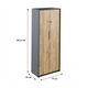 Designová minimalistická vysoká skříň se hodí do moderní kanceláře, či pracovny. Skříňka je prakticky rozdělena. Na levé straně najdete věšákovou část, nad věšákovou tyčí se nachází police. Na pravé straně je policová část rozdělena na čtyři Castin pravých dvířkách se nachází zámek, takže vaše dokumenty budou v bezpečí. Skříň stojí stabilně na nízkých nožičkách.