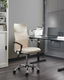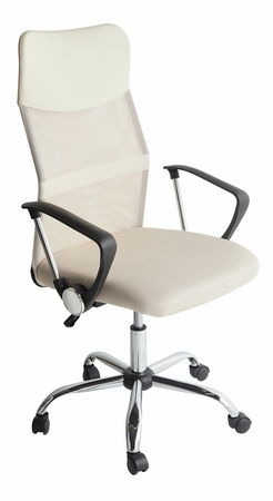 Tato kancelářská židle v ergonomickém designu poskytne správnou oporu vašemu tělu během dlouhých hodin strávených při práci. Nastavitelná výška sedáku a 360° otočný mechanismus vám umožní přizpůsobit si sedátko podle vašich preferencí. Kovová pochromovaná základna má 5 hladce se otáčejících koleček. Hrubé sedátko je čalouněno béžovou prodyšnou síťovinou a kvalitní umělou kůží na opěrce hlavy.