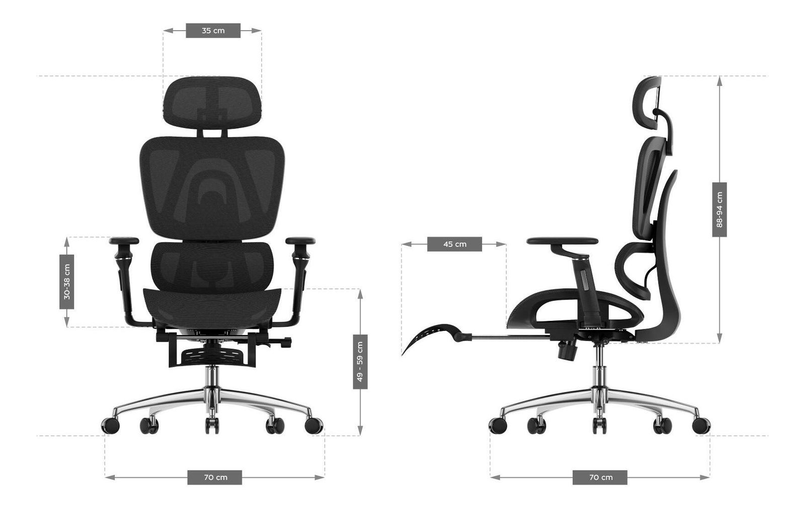 ZobrazitDíky široké škále úprav si téměř každou část židle přizpůsobíte individuální potřeby a fyzické potřeby. Bederní opěrka bude odrážet odpor spodní části zad a hlavně páteře. 4-stupňové nastavení výšky vám umožní přizpůsobit vašim potřebám a výšce. Ergonomická židle vám umožní ohnout se až do 135 stop a zůstat v kontaktu při práci, ale také při relaxaci. Opěrka hlavy s nastavitelným úhlem pomáhá udržovat polohu krku a páteře. nastavení nahoru a nakonec vám umožňuje přizpůsobit vaší výšce. Díky věšáku usestněnému on no side bude vaše skříň vypadat nedotknutelně. Židle má nastavitelné opěrky rukou.