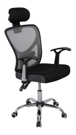 Stylová kancelářská židle s opěrkou hlavy, tvarovaným opěrákem, plastovými područkami a kovovou podstavou. Podstava má pogumované kolečka vhodné na plovoucí a dřevěné podlahy. Výšku sezení lze nastavit pomocí páčky. Barevné provedení židle je černá a šedá.
