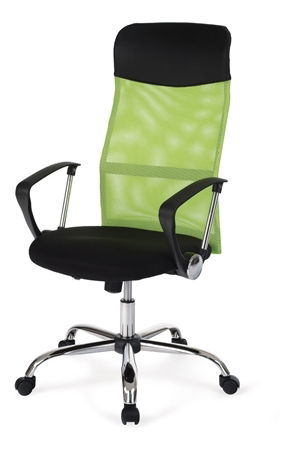 Jednoduchá kancelářská židle s černou síťovanou opěrkou na záda a černou látkou na sedáku. Židle má kovový kříž v chromové barvě. Zvedací mechanismus je plynový píst. Houpací mechanismus je strandard. Černé područky.