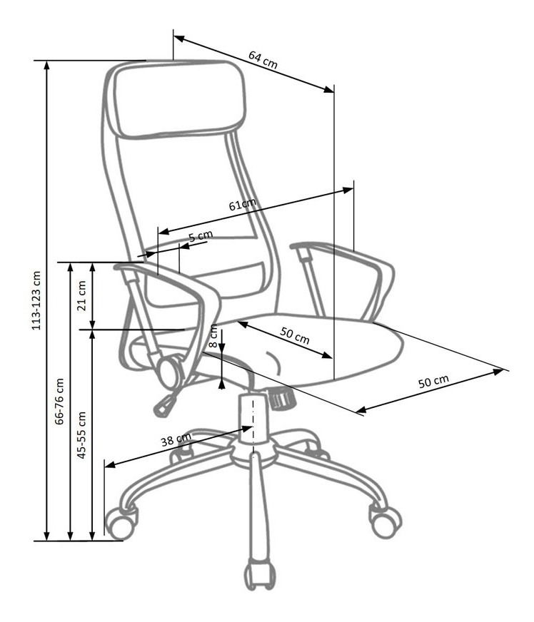 Kancelářská židle Lava je ideálním řešením pro každého, kdo tráví spoustu času sezením za stolem. S výškou 113-123 cm a hloubkou 64 cm je židle optimálně uzpůsobena pro pohodlné sezení. Materiál z látka přidává kancelářské židli Lava elegantní a sofistikovaný vzhled. Ať už pracujete z domova nebo v kanceláři, tato židle zaručí pohodlné sezení po celý den.