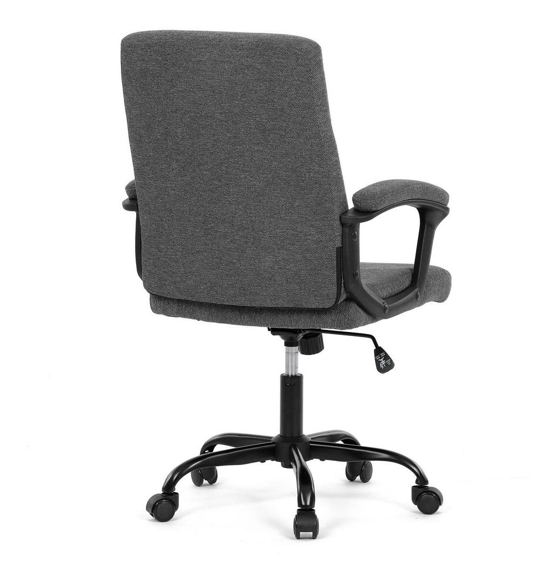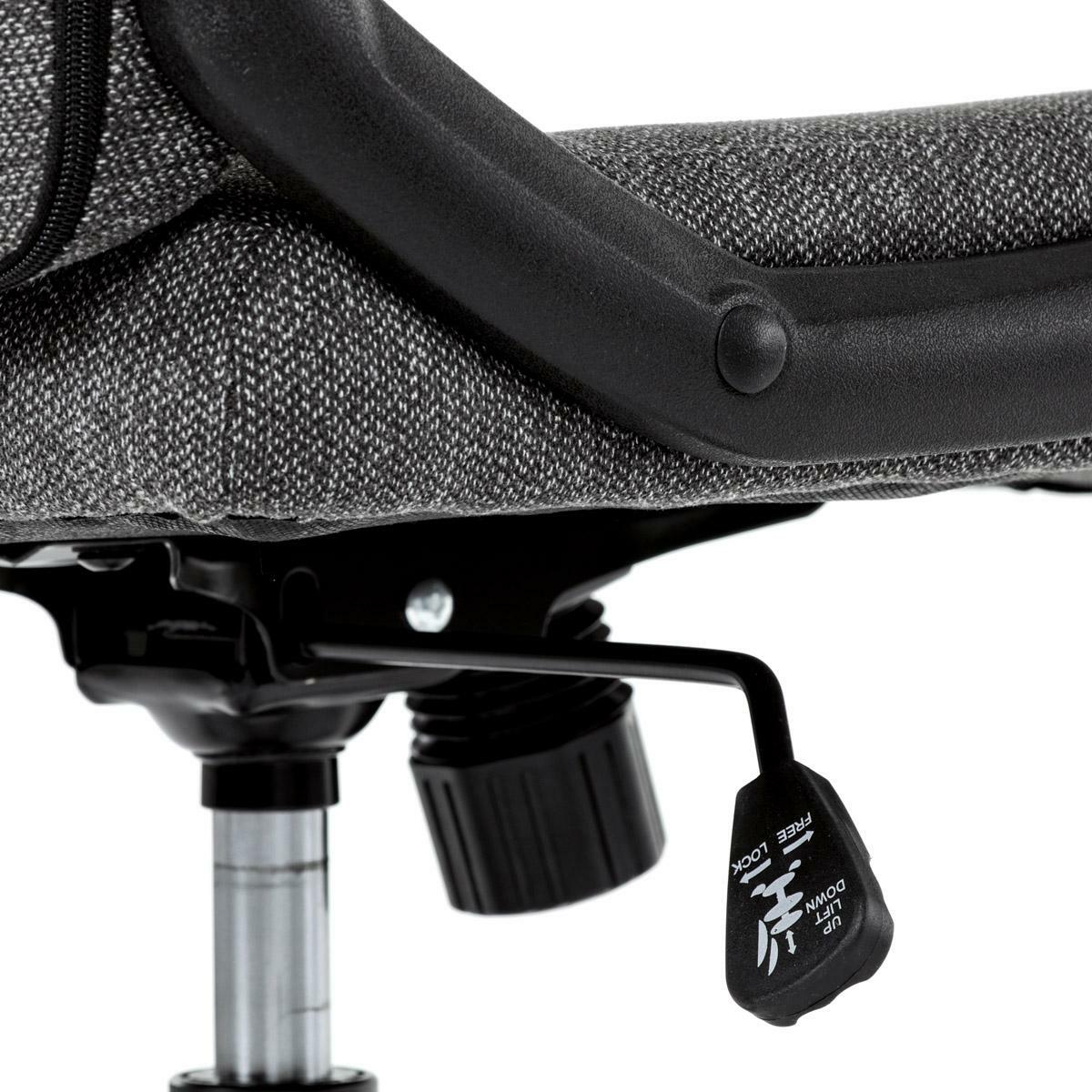 Dopřejte si sofistikované pohodlí s kancelářským křeslem. Stylový šedý sedák z hladké látky slibuje eleganci a dlouhotrvající pohodlí i v těch nejrušnějších dnech. tvoří kontrast k základní barvě. Strategické barevné řešení bez námahy vylepší moderní kancelářský prostor. Kladl se důraz, aby kolečka dokonale kombinovala stabilitu a mobilitu židle. poskytovat pohodlí. Kancelářská židle se neupíná k myšlence zbytečně polstrovaných područek, které způsobují nepohodlí při dlouhém používání. Absence čalouněných područek zajišťuje volný pohyb paží při psaní na klávesnici, psaní a provádění jakýchkoli dalších úkonů.