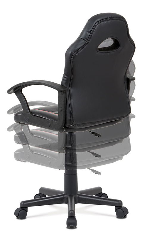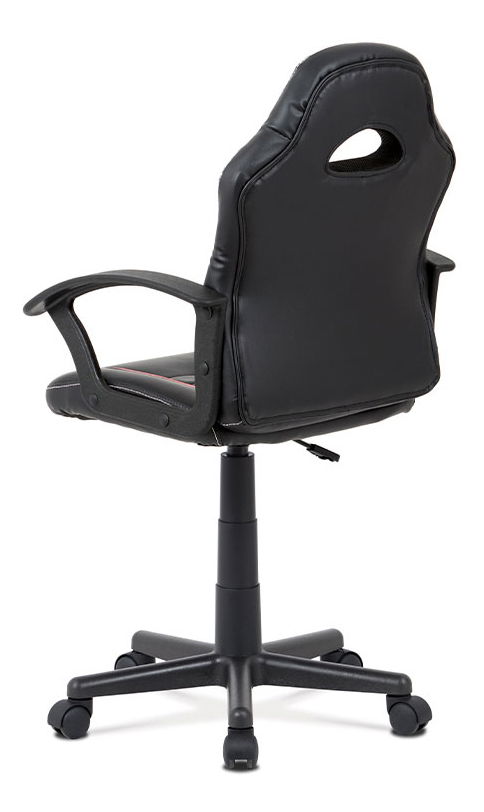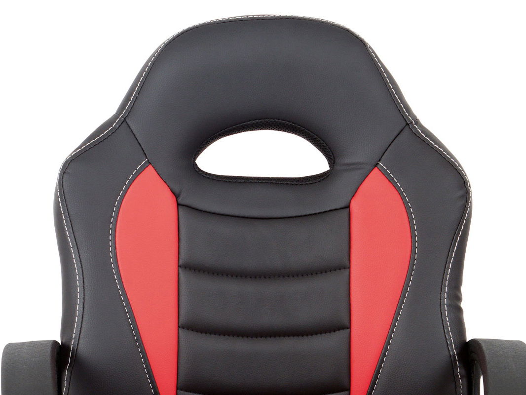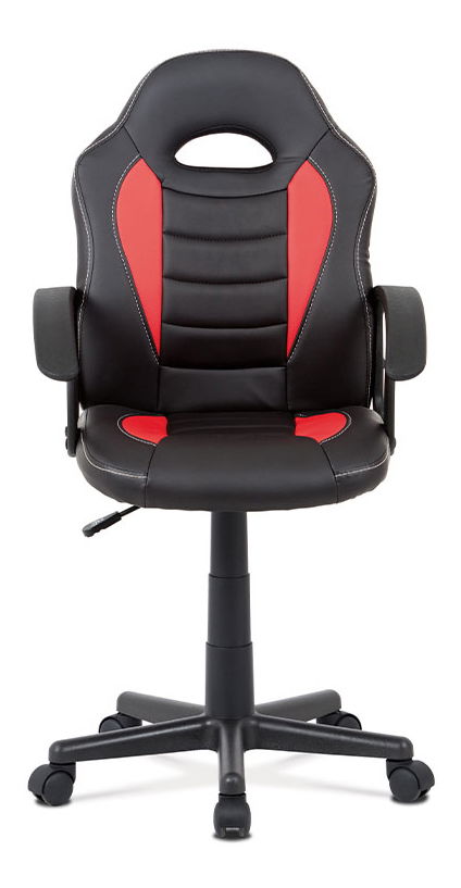 ZobrazitDětskou kancelářskou židli Viller-V107 s designem závodních vozů ocení nejen závodní nadšenci, ale také začínající hráči. Sedák s opěrákem jsou čalouněny červeno-černou ekokůží s bílým designovým prošitím. Područky jsou z plastou černé barvy a vytváří dokonalé podmínky pro hraní. Průřezový otvor v opěráku čalouněným černou látkou MESH, který nejen že dodává židli potřebný závodní vzhled, ale také usnadňuje manipulaci. Židle se dá výškově nastavit. Disponuje kvalitním pístem, zesíleným plastovým křížem černé barvy a plastovými kolečky vhodnými na koberce.