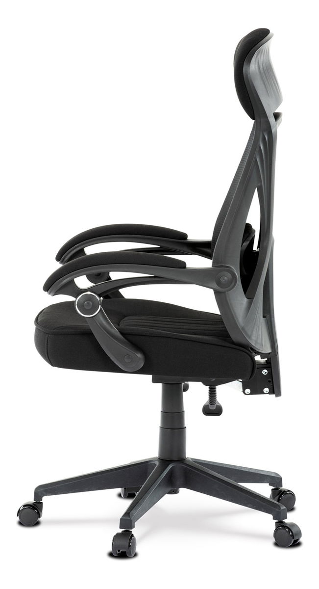 Luxusní kancelářská židle Yrga-Y309 je moderní designová židle, navržené pro standardní a náročnou kancelářskou práci. Ocení ji i PC hráči. Zabezpečí maximální pohodlí a dokonalou ergonomii sezení. Potah kombinuje černo, jemně hrubé látky na sedáku, opěrkách, bederní opěrce i o opěrce hlavy a černou síťovinu MESH na vysokém opěráku. Sedák má zvýšené okraje a střed je zpevněn výrazným a dekorativním prošitím. Masivní designový černý plastový opěrák má designovými prolisy na ladných oblých tvarech. Výplň sedáku i hlavové opěrky je z velmi kvalitní a tuhé PU pěny. Židle má permanent contact mechanismus s plynulou aretací. Při vypnutí je možné se s opěradlem volně pohupovat. Výšku sezení lze upravit jednou páčkou na pravé straně přes kvalitní plynový píst. Poloha opěráku se nastavuje druhou páčkou, umístěnou rovněž na pravé straně křesla. Kříž je z černého plastu a je osazen černými plastovými kolečky pr. 5 cm s gumovým obvodem ideálním na tvrdé podlahy. Se stabilitou celých 70 cm průměru kříže si můžete dovolit opravdu hodně jak z kancelářské, tak herní činnosti. Opěrák je vysoký, prodyšný a ergonomicky navržený. Má integrovanou zesílenou opěrkou hlavy, polstrovanou a výškově nastavitelnou bederní opěrkou a slouží nejen jako výborná opora celých zad, ale také podporuje správné držení páteře. Područky jsou z plastu, jsou polstrované a potažené černou látkou. Šířka je 7,5 cm, délka opěrné plochy je 32 cm a výška 3 cm. Při sklápění sedáku se pohybují a kopírují jeho pohyb a polohu. Tato židle je skvělou volbou, ať stojí za kancelářským nebo hracím stolem. Díky svému černému provedení s velmi decentními chromovými doplňky na područkách působí vždy velmi luxusně. Kvalita zpracování, důraz na pohodlí a ergonomii, to zaručuje pohodu při denní kancelářské práci i herních večerech.