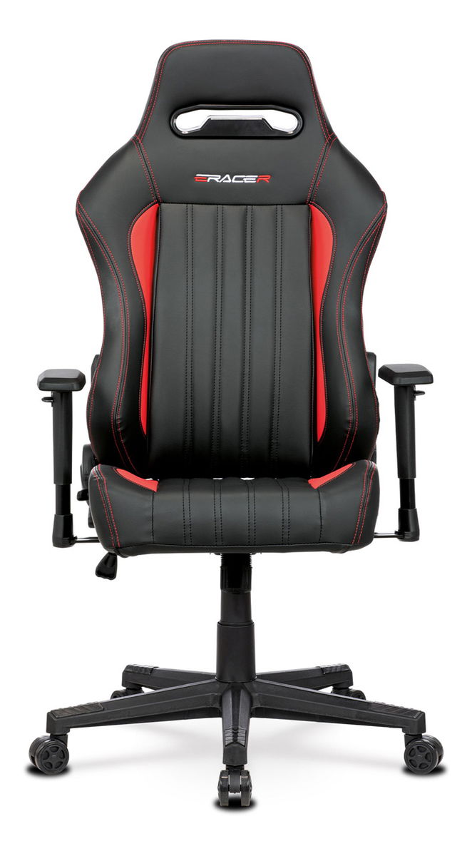 ZobrazitSkvělé herní křeslo Farello-F06 je designové moderní křeslo, navržené nejen pro náročné požadavky PC hráčů, ale je vhodné i pro standardní kancelářskou práci. Poskytuje maximální pohodlí při dokonalé ergonomii sezení. Potah kombinuje černou a červenou ekokůži s vyšívaným nápisem „eracer“. Vnitřní rám je svařený z ohýbaných ocelových trubek a tvoří pevnou základnu pro celé křeslo. Výplň sedáku i opěráku tvoří kvalitní a tuhá PU pěna, vyztužení a pružnost zajišťují látkové popruhy s kovovým uchycením do konstrukce. Křeslo má houpací mechanismus. Síla houpání se reguluje plastovým šroubem pod sedákem. Výšku sezení lze upravit páčkou na pravé straně přes kvalitní plynový píst. Černý masivní plastový kříž s černými plastovými protiskluzovými prvky a je osazen černými plastovými kolečky vhodnými na koberce. Vysoký opěrák je nejen výbornou oporou celých zad a podporuje správné držení páteře, ale je možné nastavit jeho sklon od 90°až do 180° a to v jakékoli poloze. Ovládá se pomocí mechanismu s páčkou umístěným na pravé straně. 2D područky jsou s měkkým povrchem, výškově stavitelné a s natáčecí opěrkou. Herní křesla z této kolekce jsou skvělou volbou, ať je zaparkujete za hrací či kancelářský stůl. Působí dominantně, jako nepřehlédnutelný solitér. Kvalita zpracování, důraz na pohodlí a ergonomii, to zaručuje pohodu při dlouhých herních večerech i denní kancelářské práci. Ke krátkodobému odpočinku můžete využít opěrák, sklopený téměř do horizontální polohy.
