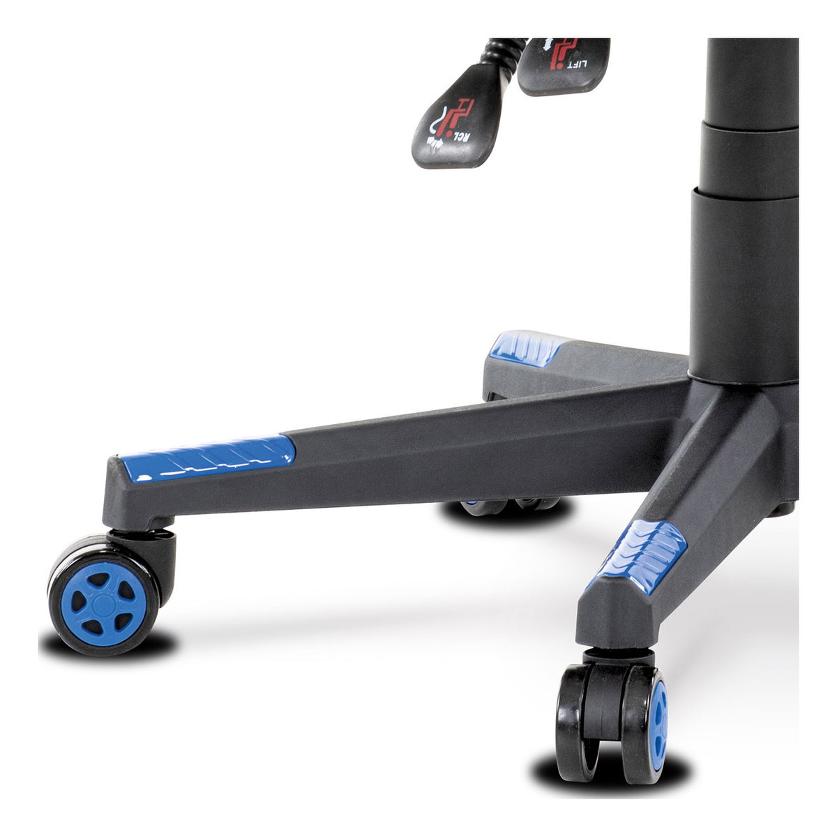 Luxusní herní a kancelářské křeslo Ymbun-Y213 je moderní designové křeslo, které je navržené nejen pro náročné požadavky PC hráčů, ale je uzpůsobené i pro standardní kancelářskou práci. Poskytuje maximální pohodlí a dokonalou ergonomii sezení. Potah kombinuje modré a černé perforované ekokůže na sedáku i opěráku, černé síťoviny MESH a černé látky na sedáku i bocích opěrky hlavy. Opěrák je z černého plastu a má futuristický design. Výplň sedáku i hlavové opěrky jsou z velmi kvalitní a tuhé PU pěny. Vyztužení a pružnost zajišťují látkové popruhy. Křeslo má permanent contact mechanismus s plynulou aretací. Při vypnutí je možné se s opěradlem volně pohupovat. Výšku sezení lze upravit jednou páčkou na pravé straně přes kvalitní plynový píst. Poloha opěráku se nastavuje druhou páčkou, umístěnou rovněž na pravé straně křesla. Plastový kříž černé barvy je masivní, s modrými protiskluzovými plastovými doplňky a je osazen černými plastovými kolečky pr. 6 cm s modrým středem a gumovým obvodem, který je ideální na tvrdé podlahy. Se stabilitou celých 70 cm průměru kříže si můžete dovolit i ty nejnáročnější hry. Opěrák je vysoký, prodyšný a ergonomicky navržený. Má integrovanou zesílenou opěrku hlavy, polstrovanou a výškově nastavitelnou bederní opěrku, která slouží nejen jako výborná opora celých zad, ale také podporuje správné držení páteře. Područky jsou z plastu, polstrované a potažené modrou a černou ekokůží. Šíře je 7 cm, délka opěrné plochy 33 cm a výška 3 cm. Při sklápění sedáku se pohybují a kopírují jeho pohyb a polohu. Toto herní a kancelářské křeslo je skvělou volbou, ať stojí za hracím či kancelářským stolem. Působí luxusně jako nepřehlédnutelný designový solitér. Kvalita zpracování, důraz na pohodlí a ergonomii, to zaručuje pohodu při dlouhých herních večerech i denní kancelářské práci.
