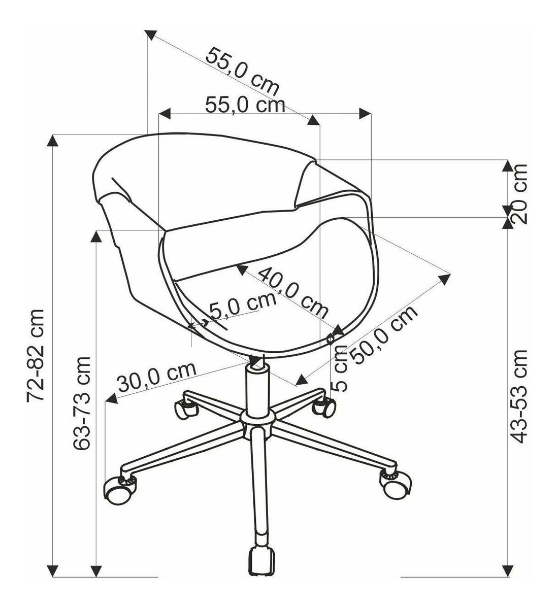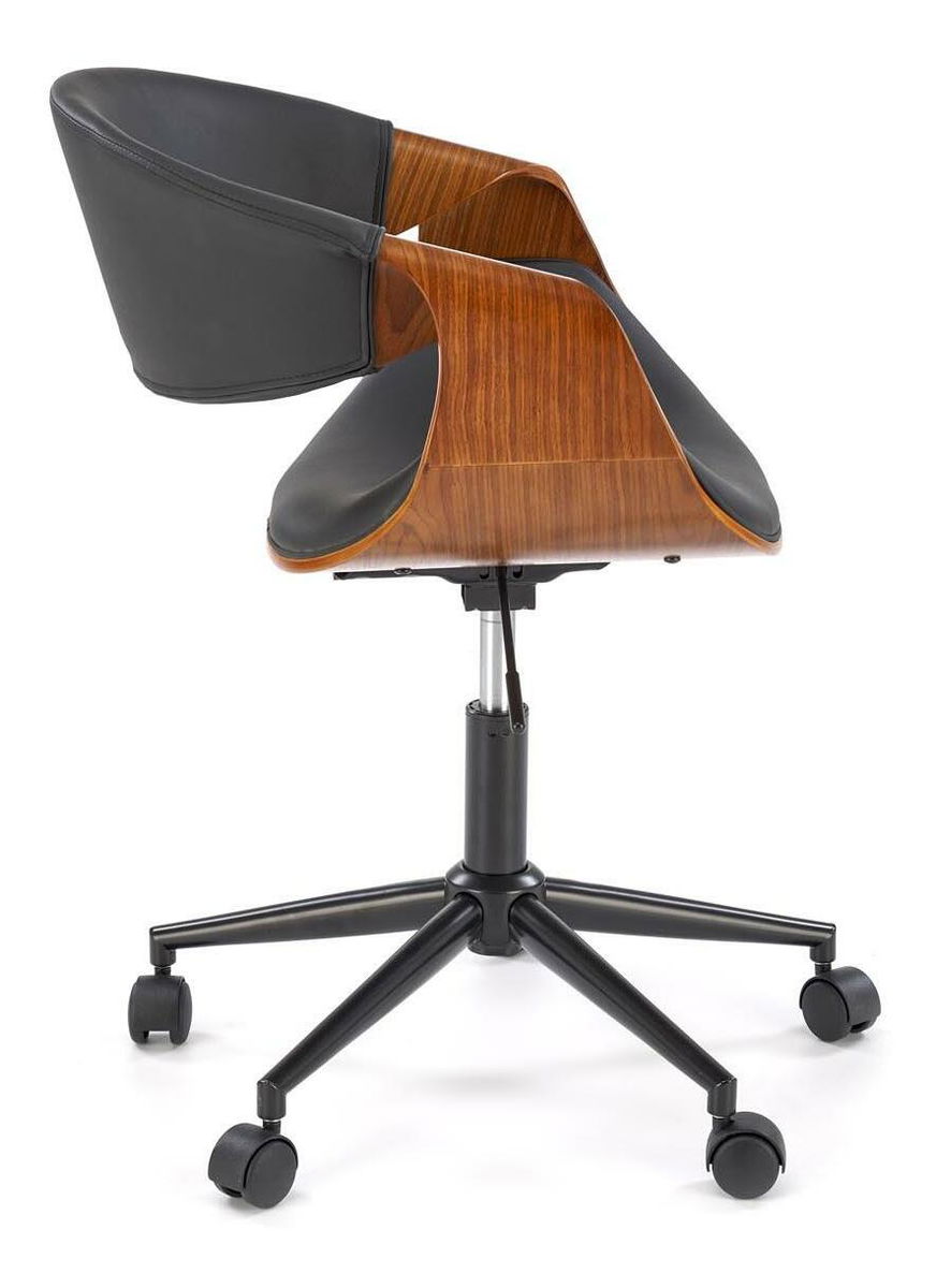 Toto moderní kancelářské křeslo je stylovým a funkčním doplňkem do každého pracovního prostoru. Má kovové nožičky a pryžová kolečka, která zajišťují stabilitu a hladký pohyb bez poškození podlahy. Křeslo je čalouněno kombinací ekokůže a překližky, což mu dodává elegantní vzhled a poskytuje pohodlí. Disponuje funkcí nastavení výšky, což umožňuje přizpůsobit výšku sedáku v rozsahu od 43 do 53 cm, a tím dosáhnout optimální pracovní polohy. S nosností až 120 kg je toto křeslo vhodné pro různé uživatele, kteří hledají komfort a praktické řešení pro svou kancelář nebo domácí pracovnu.