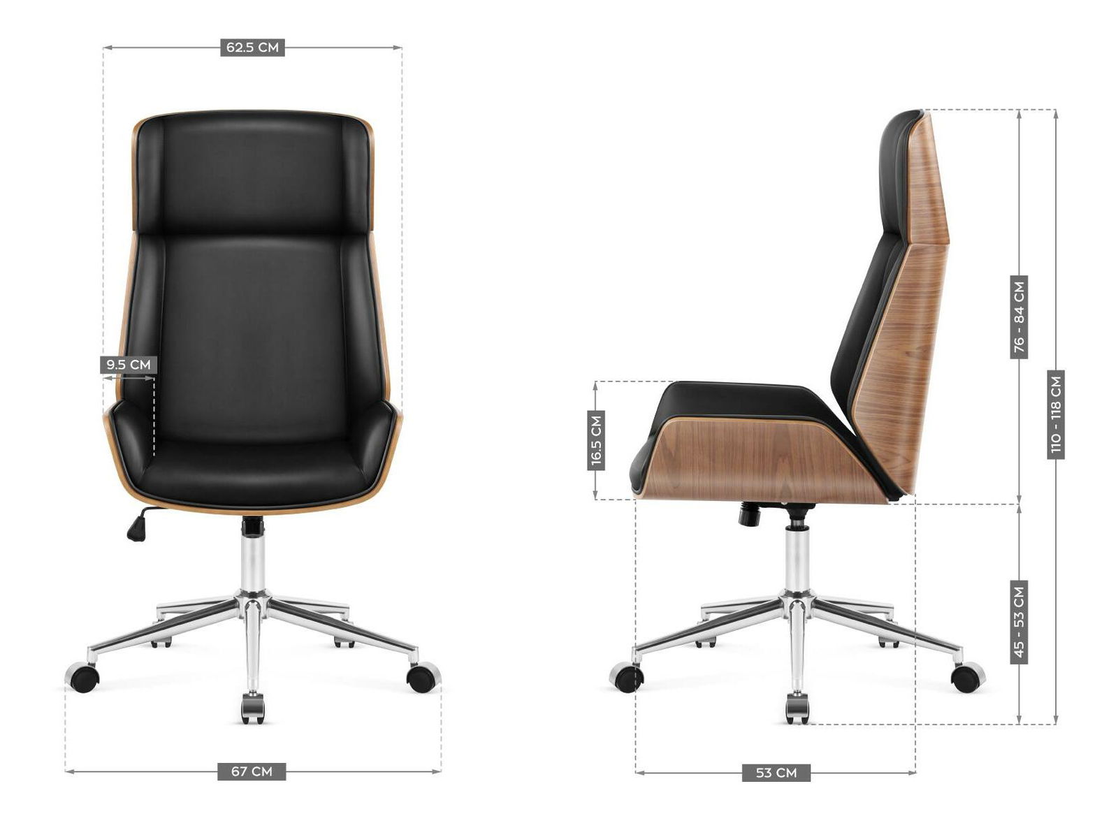 Chcete se cítit jako generální ředitel společnosti na Wall Street? Změňte svou kancelář a vyberte si luxus skutečného pohodlí. Navrženo s důrazem na nejmenší detaily s použitím nejlepších materiálů. To vše proto, abyste se cítili jako skutečný šéf. Speciálně profilovaný design židle zajišťuje pohodlí, skvělý vzhled, zdravé držení těla, správně vyrovnává páteř, a tím snižuje únavu. Výška křesla umožňuje opřít celou zádovou plochu o čalouněné opěradlo. Křeslo je vybaveno dřevěným korpusem, který mu dodává vzhled prémiové třídy. Oporu hlavy v této poloze zajišťuje profilovaná, měkká opěrka hlavy, která nejen pěkně vypadá, ale především vám umožní v křesle si opravdu odpočinout a odpočinout si od nabitého programu. Plynový pohon zajišťuje efektivní, bezporuchový provoz se zatížením až 150 kg. Mechanismus Tilt Plus umožňuje nastavení výšky sedáku, což umožňuje přizpůsobit židli výšce uživatele. Funkce SoftFlex vám umožňuje opřít se o židli a jemně se houpat. Pět dvojitých polyuretanovo-gumových koleček zajišťuje volný pohyb po židli a použité materiály chrání podlahu před škrábanci a odřeninami.