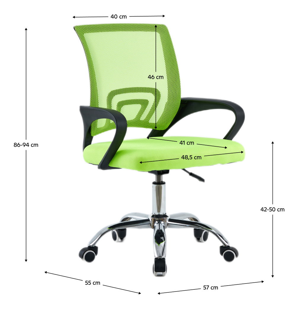 Kancelářské křeslo Declan (zelená + černá) je elegantní a pohodlné křeslo vhodné do vaší kanceláře. S výškou 86 cm, šířkou 57 cm a hloubkou 55 cm vám poskytne dostatek prostoru pro pohodlné sezení. Toto křeslo je vyrobeno s jemnými a něžnými tvary, které dodávají pocit harmonie. Jeho kvalitní síťovina v zeleném provedení a pochromovaná kovová růžice poskytují nejen pohodlnost, ale také elegantní vzhled. Kancelářské křeslo Declan je vybaveno mechanismem pro snadnou regulaci výšky sedu a plastovými opěrkami na ruce. Užívejte si každý den s tímto křeslem, které vás bude potěšovat svým stylem a komfortem.