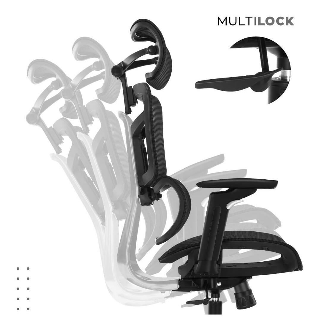 Ergonomická kancelářská židle byla navržena pro pohodlnou dlouhodobou kancelářskou práci. Víceúrovňový systém nastavení vám umožní přizpůsobit si židli podle vašich individuálních preferencí. Použití mnoha praktických řešení zajišťuje maximální komfort bez zatěžování páteře. Odolná a designová konstrukce z něj činí nejlepší doplněk do moderní kanceláře. Dírkový design s nejkvalitnějšími materiály a pěnami zajišťuje vynikající proudění vzduchu. Pohodlné područky nastavitelné ve třech rovinách: nahoře - dole (rozsah 8 cm), vpředu - vzadu (6 cm). Funkce SeatRest umožňuje naklonění opěradla do libovolné polohy. Díky mechanismu Mulitlock lze opěradlo zaaretovat až ve 4 různých polohách - od ležení až po vertikální. Nastavitelná výška zádové opěrky, díky které si opěrku přizpůsobíte své výšce a konstrukci páteře. Možnost přizpůsobení zádové opěrky konstrukci páteře zajišťuje nejlepší oporu pro lopatky a bederní páteř. Díky nastavení opěradla je židle pohodlná i pro vysoké lidi. Nastavení výšky, sklonu a hloubky opěrky hlavy zajišťuje maximální komfort bez ohledu na výšku. Nastavitelná bederní opěrka zajišťuje pohodlí a správnou oporu páteře. Zesílený hliníkový rám v zadní části kancelářské židle zaručuje zvýšenou odolnost. Dvojitá kolečka umožňují volný pohyb na židli.